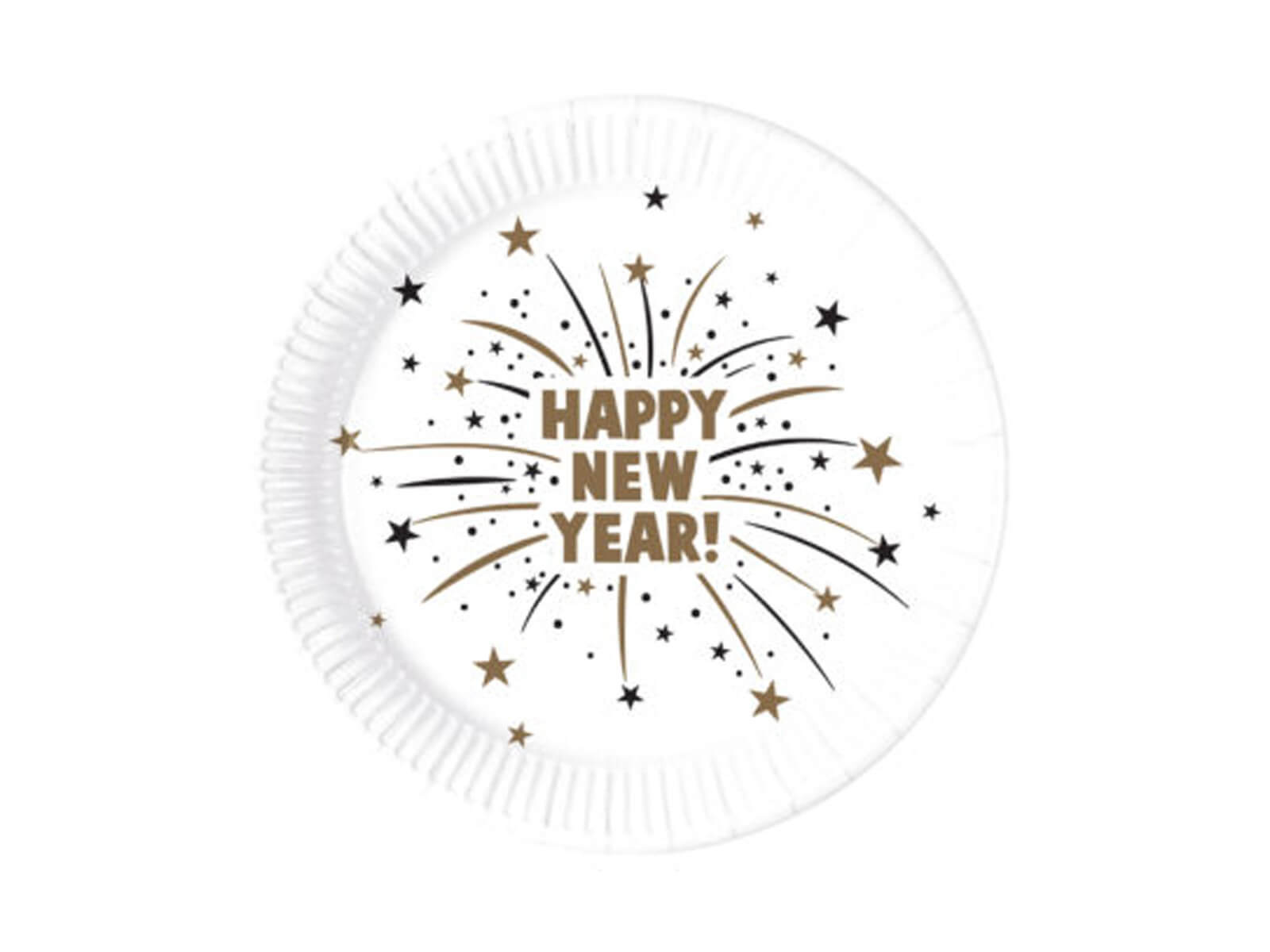 Papírtányérok szilveszterre Boldog új évet - 23 cm - 8 db.