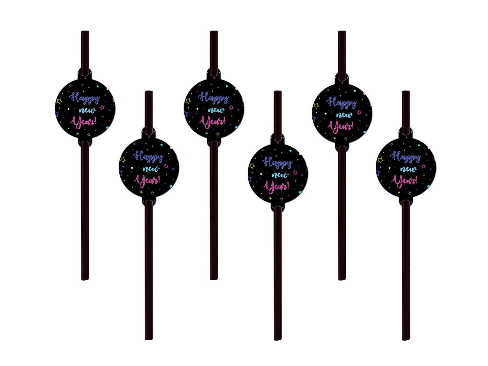 Boldog új évet fekete szívószálak - 6 db.