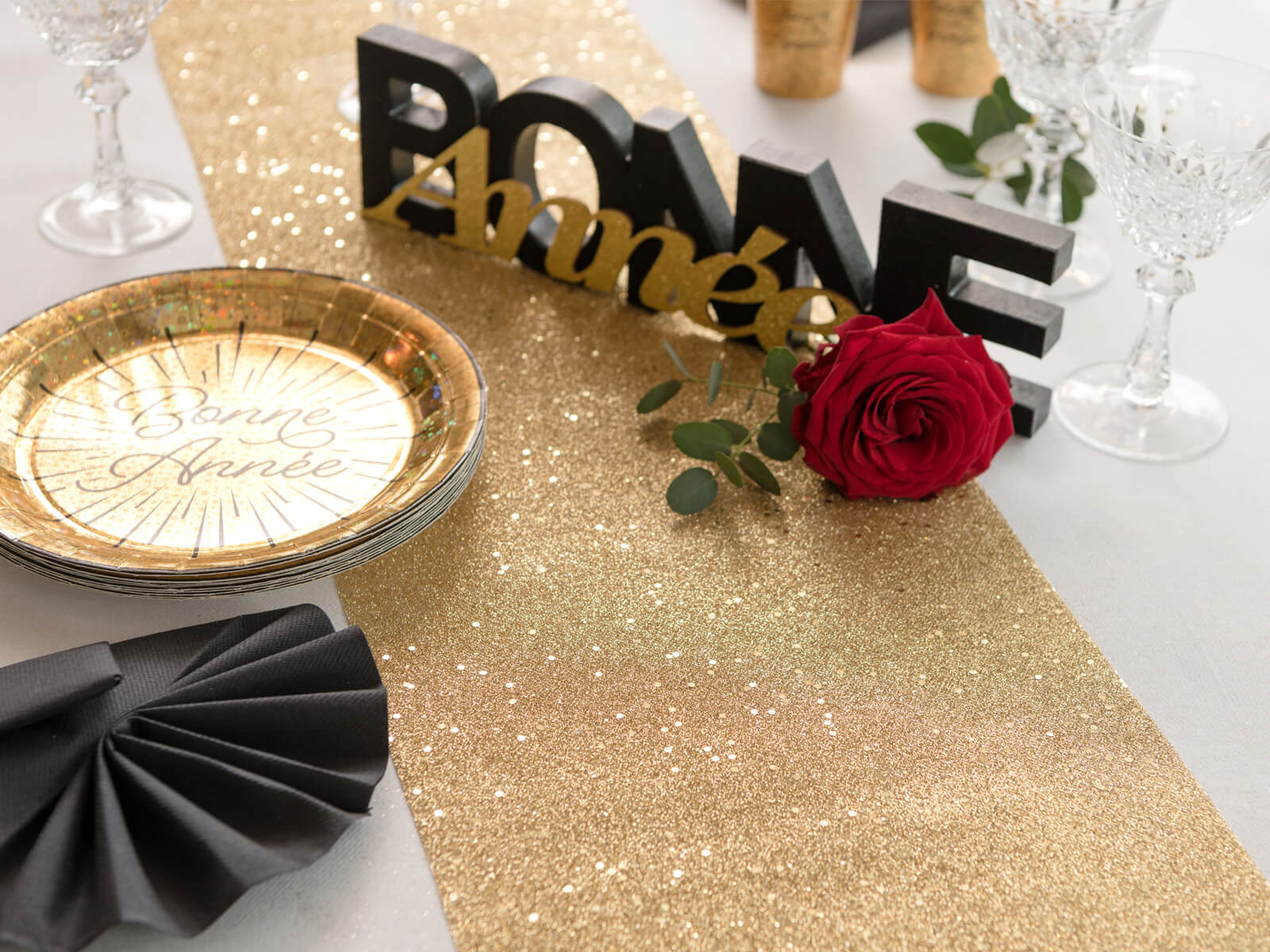 Dekoráció csillogó asztali futó - arany - 28 cm x 3 m - 1 db.