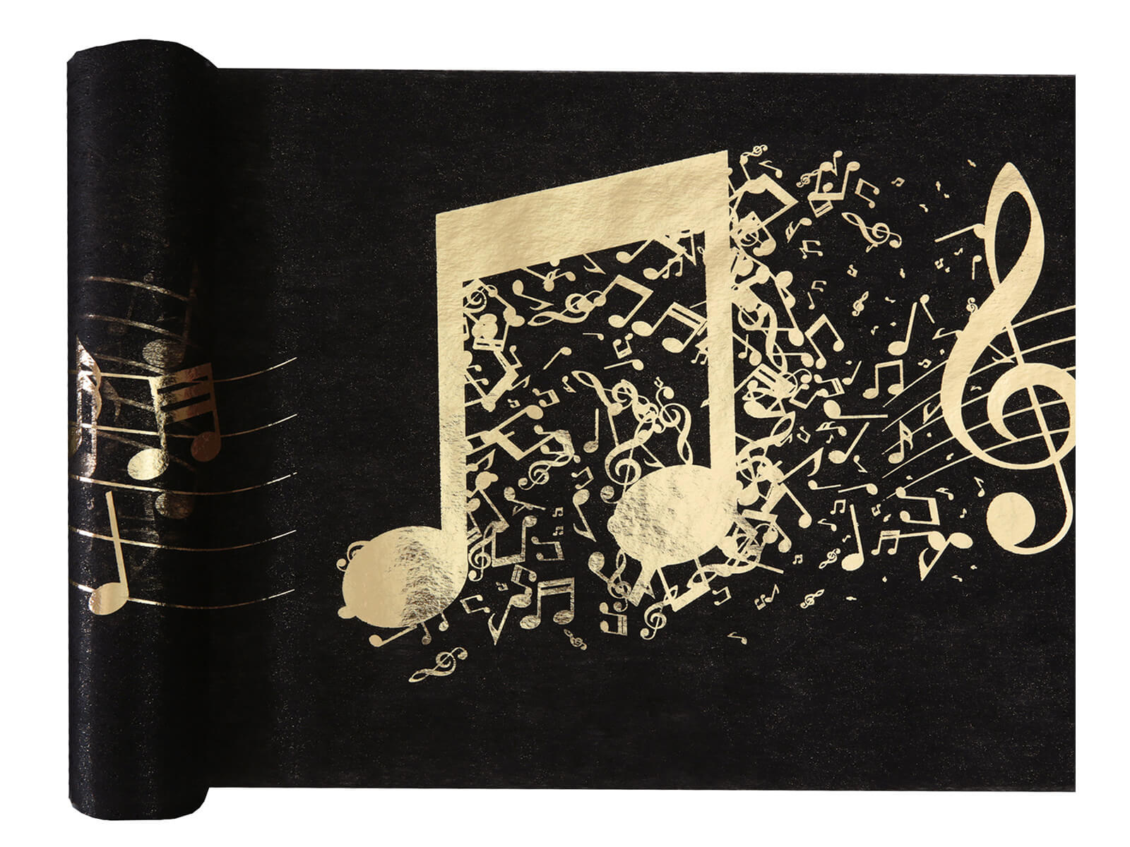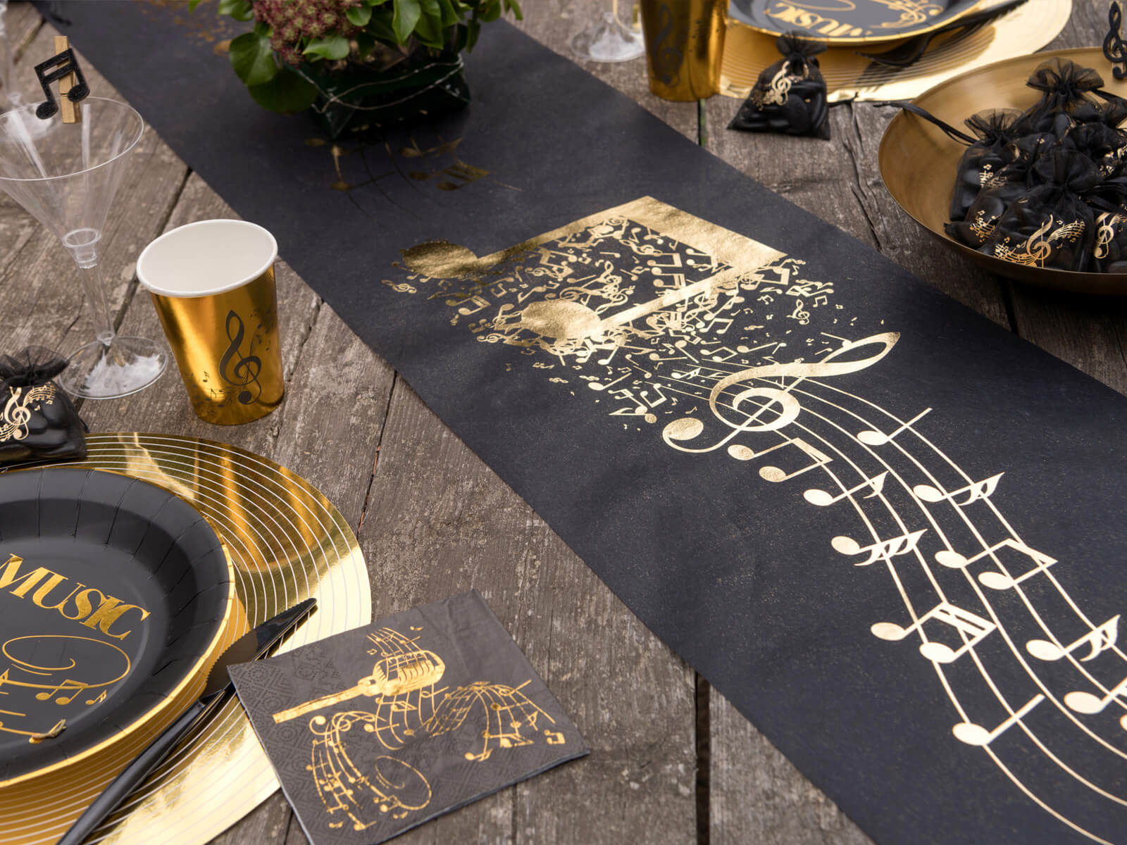 Fedezze fel a rendkívüli Five Line Runner-t, amely bájt és egyediséget kölcsönöz minden partinak vagy ünnepségnek. Ez a fekete színű, egyedi futó aranyszínű, kottákat és jegyzeteket ábrázoló nyomtatással a zene szerelmeseinek és mindazoknak tetszeni fog, akik eredeti asztali kiegészítőket keresnek.