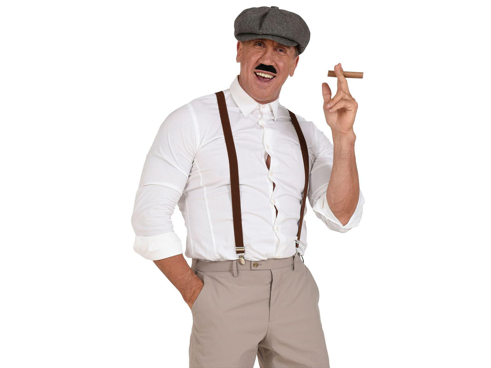 • Férfi szett, tökéletes a 20-as, 30-as vagy akár 40-es évekbeli stílusú partikhoz.