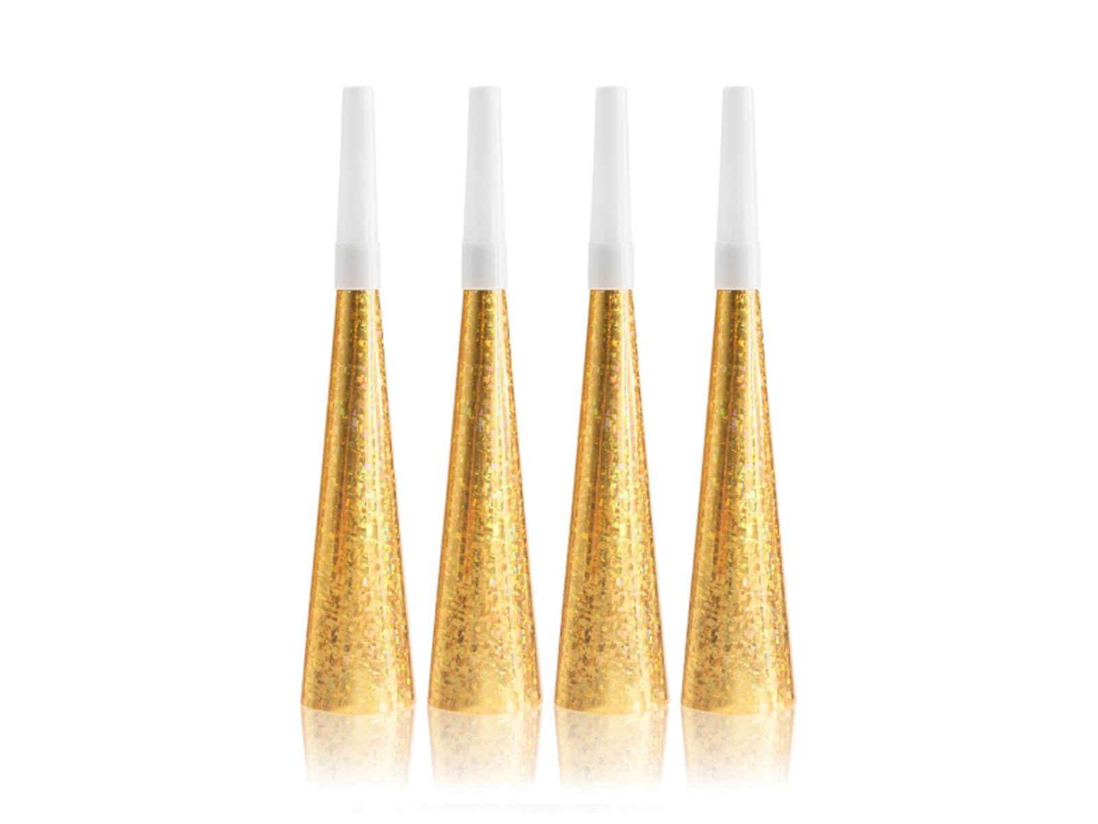 Születésnapi trombiták szarv arany holografikus - 4 db.
