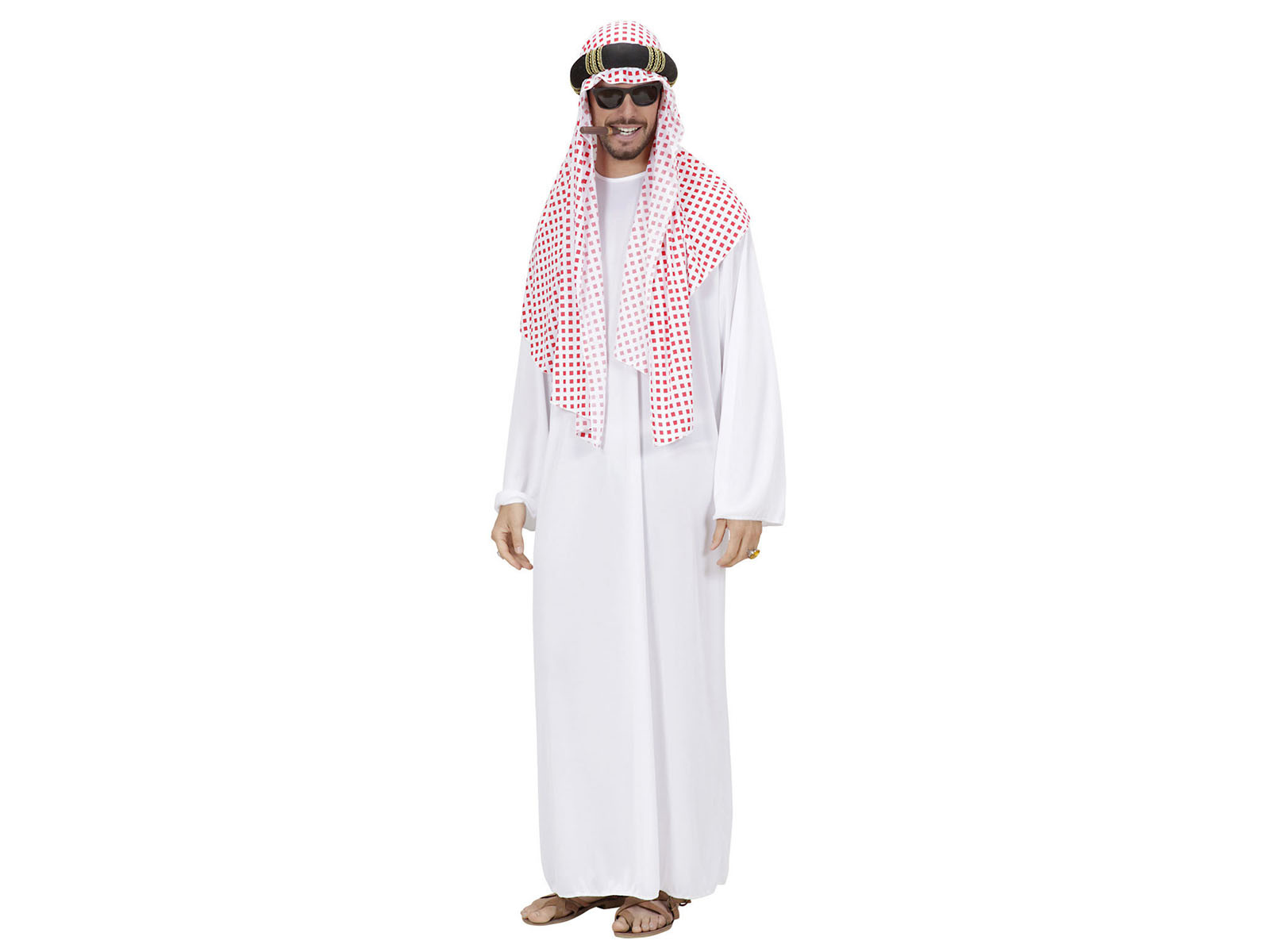 A Sheikh jelmezünk kiemelkedik a piacon kapható többi termék közül. A legmagasabb minőségű anyagokból készült, így nem csak a viselési kényelem, hanem a hiteles megjelenés is garantált. Kap egy köntöst és egy fejdíszt, amelyek együtt egy egységes és meggyőző ruhát alkotnak.