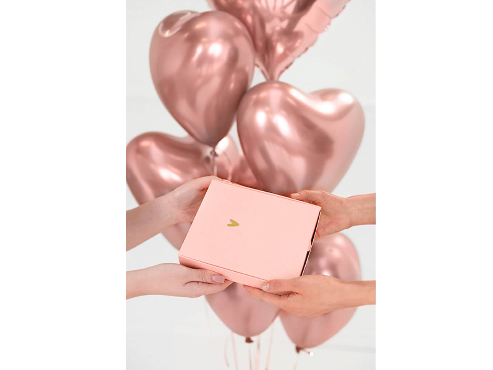 - szív alakú latex léggömbök rózsaarany színben (6 db).),
