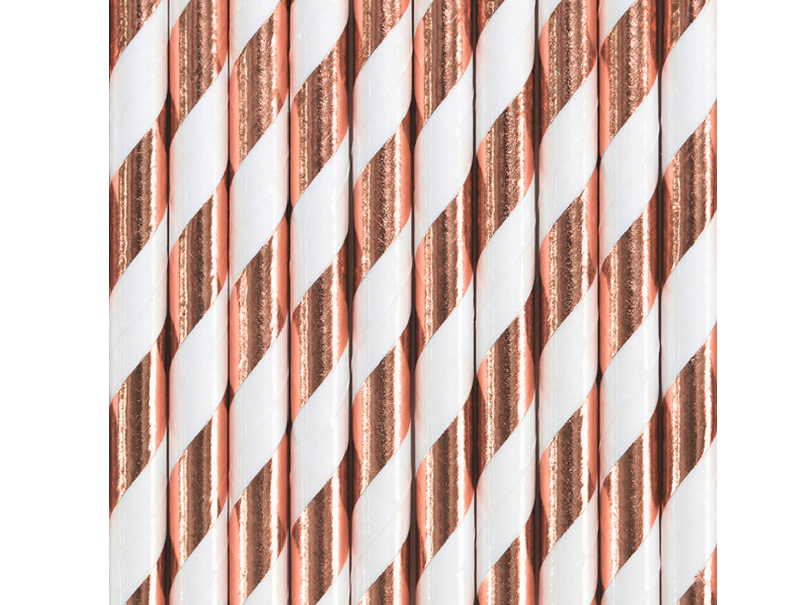 Bemutatjuk Önnek az egyedi fémes csöves szívószálakat fehér és rózsaarany csíkokkal, amelyek tökéletesen feldobják a partikat! Bármilyen alkalomra is kerüljön sor, ezek a papírcsövek tökéletes kiegészítői a családi ünnepségeken, tematikus partikon vagy baráti összejöveteleken felszolgált italoknak.