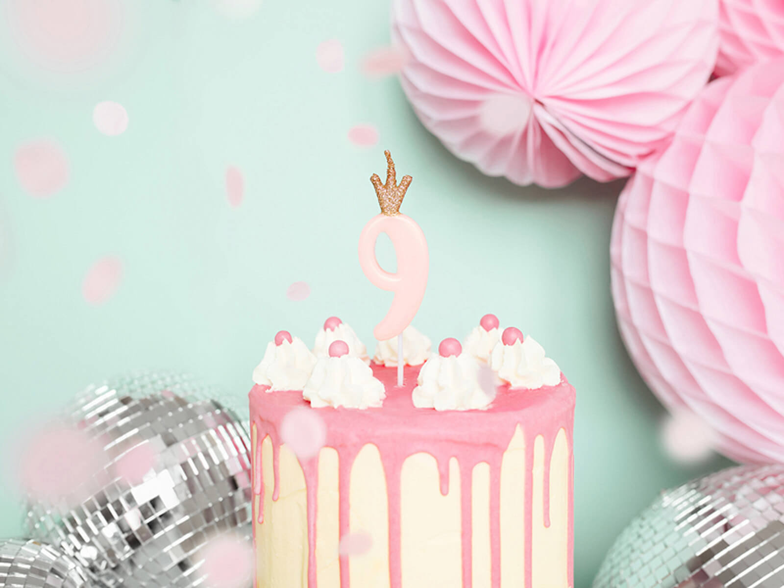 Kilencedik szám fényes rózsaszín gyertya koronával - 7 - 1 db.