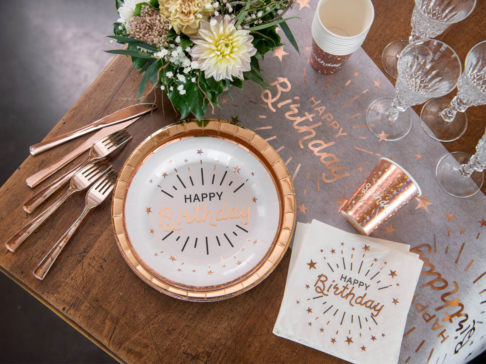 • Születésnapi csészék rózsaaranyból, Happy Birthday és csillag nyomtatással a Sparkling készletből.