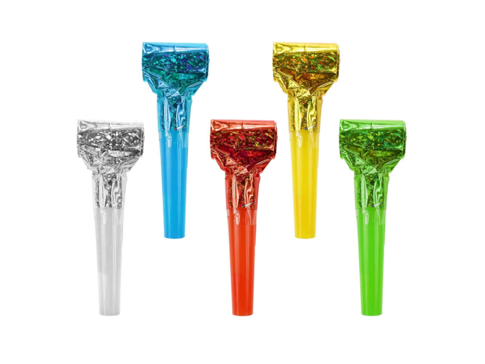 Holografikus roll-out trombitasípok - 5 db.