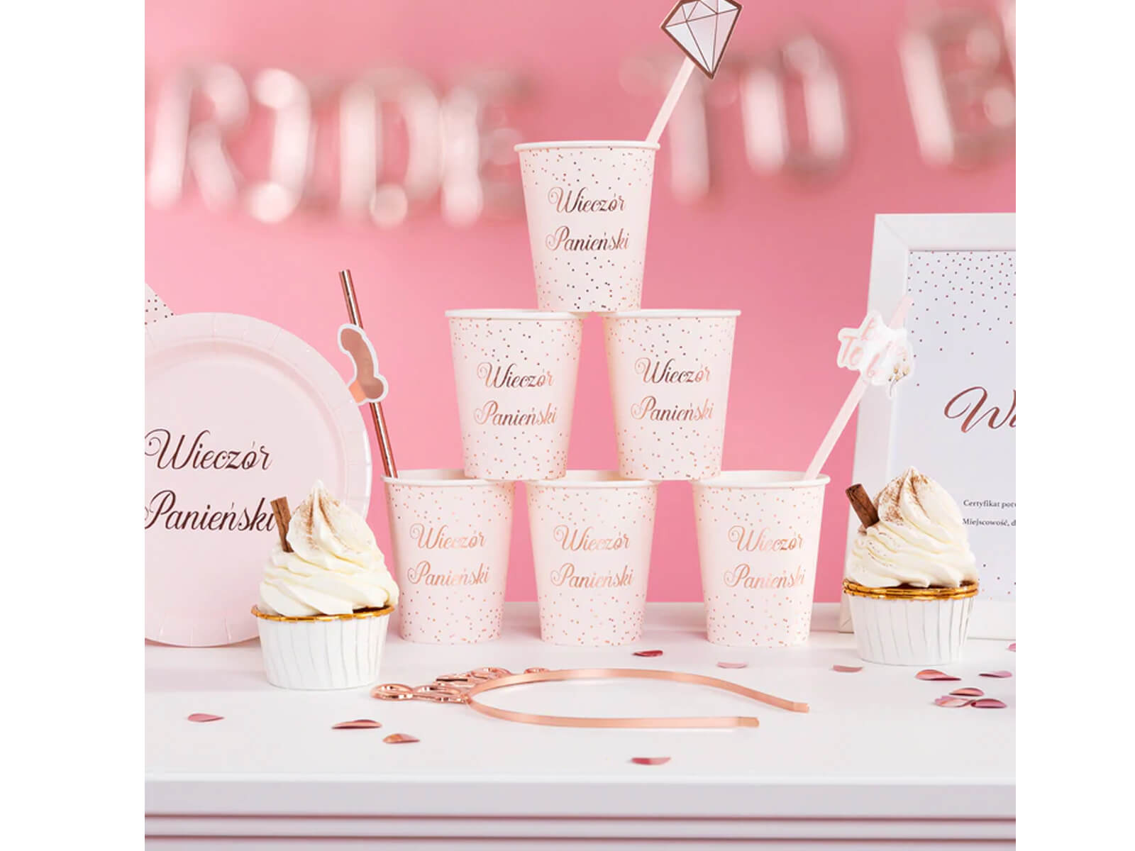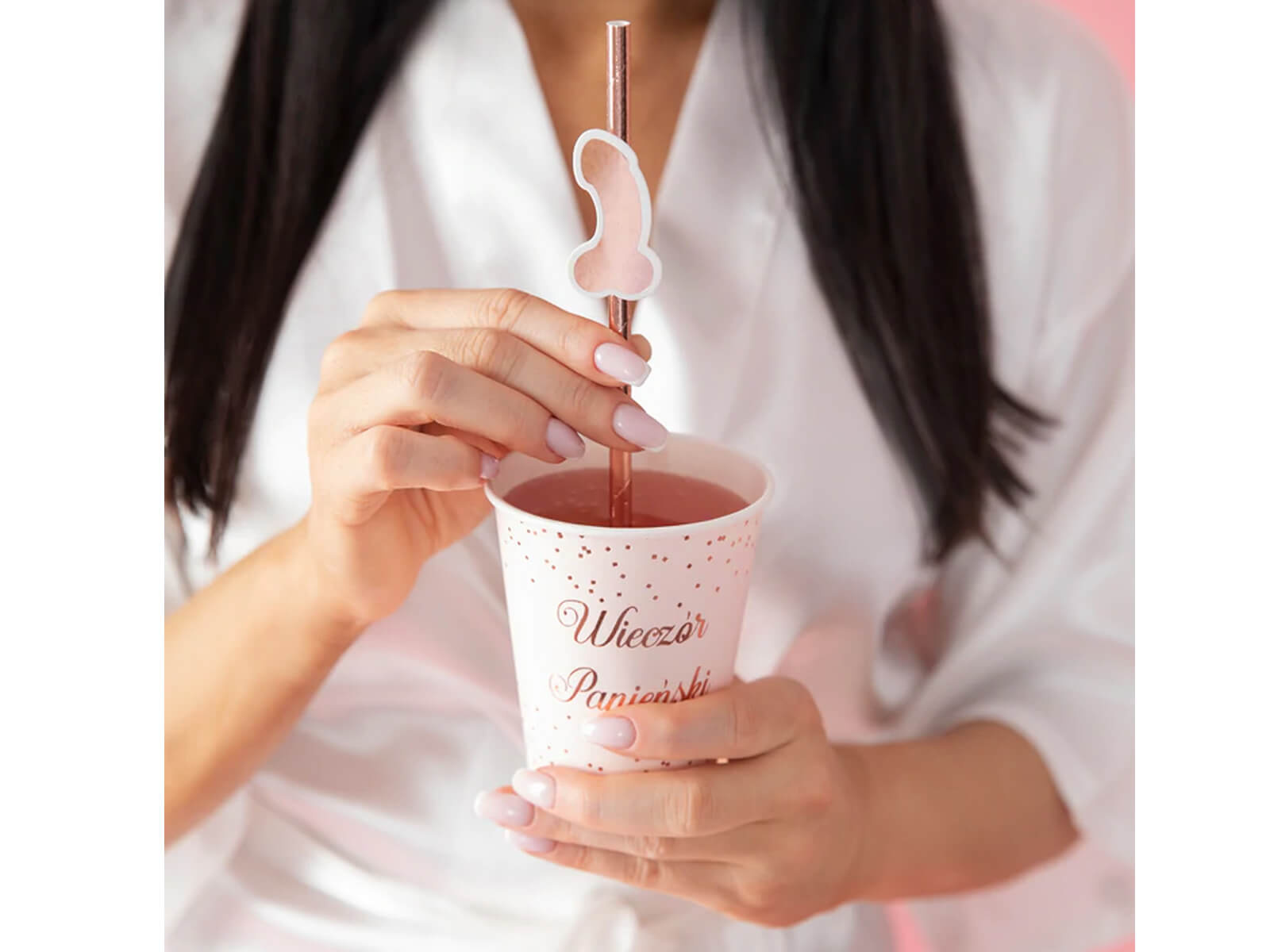 Pénisz szívószálak leánybúcsúra rózsaszín arany - 8 db.