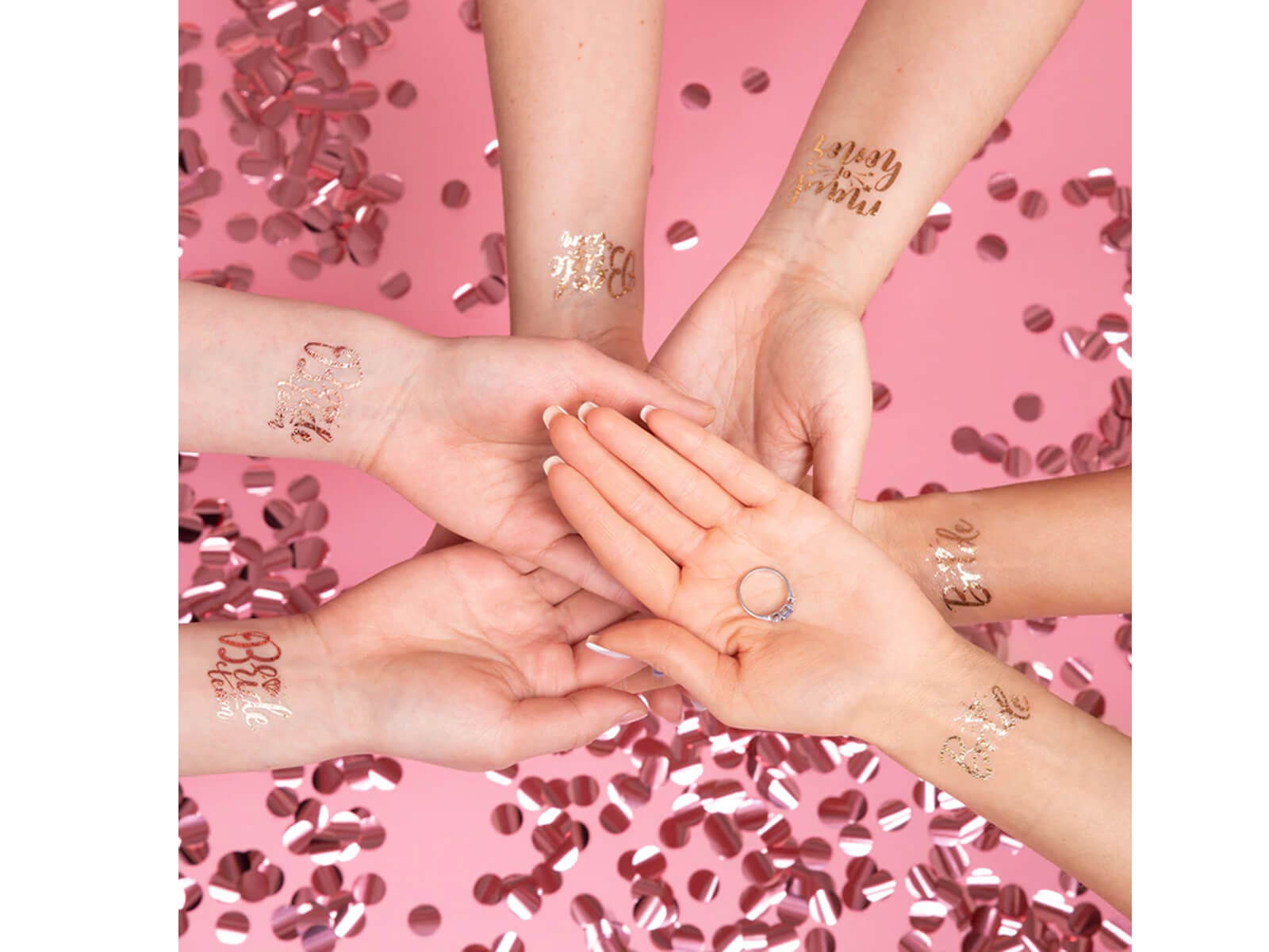 Tervezel egy lánybúcsút, de nem tudod, hogyan dobhatnád fel a bulit? Ne keressen tovább, mint ezek a gyönyörű mosható tetoválások a lánybúcsúhoz! Ez a 13 darabos készlet csillogó rózsaarany színben pompázik, és betűkkel van ellátva "Menyasszony", "koszorúslány" i "csapat menyasszony". Tökéletes a lányokkal töltött estéhez, emlékeztetni fog minden csodálatos pillanatra, amelyet a leendő menyasszony ünneplésével töltöttek. Ezeket a lemosható tetoválásokat könnyű elkészíteni - egyszerűen távolítsa el a papír hátlapot, vigye fel a bőrre, majd nedvesítse meg enyhén egy nedves ruhával, hogy ragadjon. Ha el akarod távolítani őket, használj egy kis sminklemosót vagy babaolajat, és azonnal lejönnek. Miért várjunk?? Kényeztesse magát és barátait ezzel a gyönyörű rózsaarany készlettel még ma!