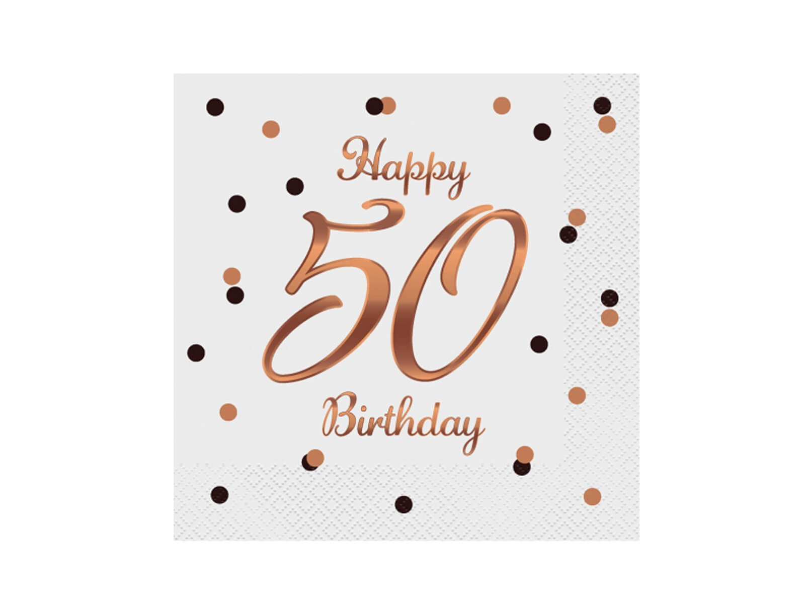 Használja ezeket a divatos és stílusos Boldog 50. születésnapot szalvétákat, hogy egy csipetnyi csillogást és klasszitást adjon az 50. születésnapi ünnepséghez! Ez a különleges csomag 20 darab luxus papírszalvétát tartalmaz, és gyönyörű rózsaarany betűkkel van ellátva, amelyek azonnal a következő szintre emelik a párt dekorációját. Kihajtogatva ezek a kifinomult szalvéták 33 cm x 33 cm méretűek, így ideálisak a süteményes tányérok vagy más finom teázási finomságok borítására. Győződjön meg róla, hogy szerettei különlegesnek érzik magukat a 60. születésnapjukon ezekkel a luxus és ízléses szalvétákkal.