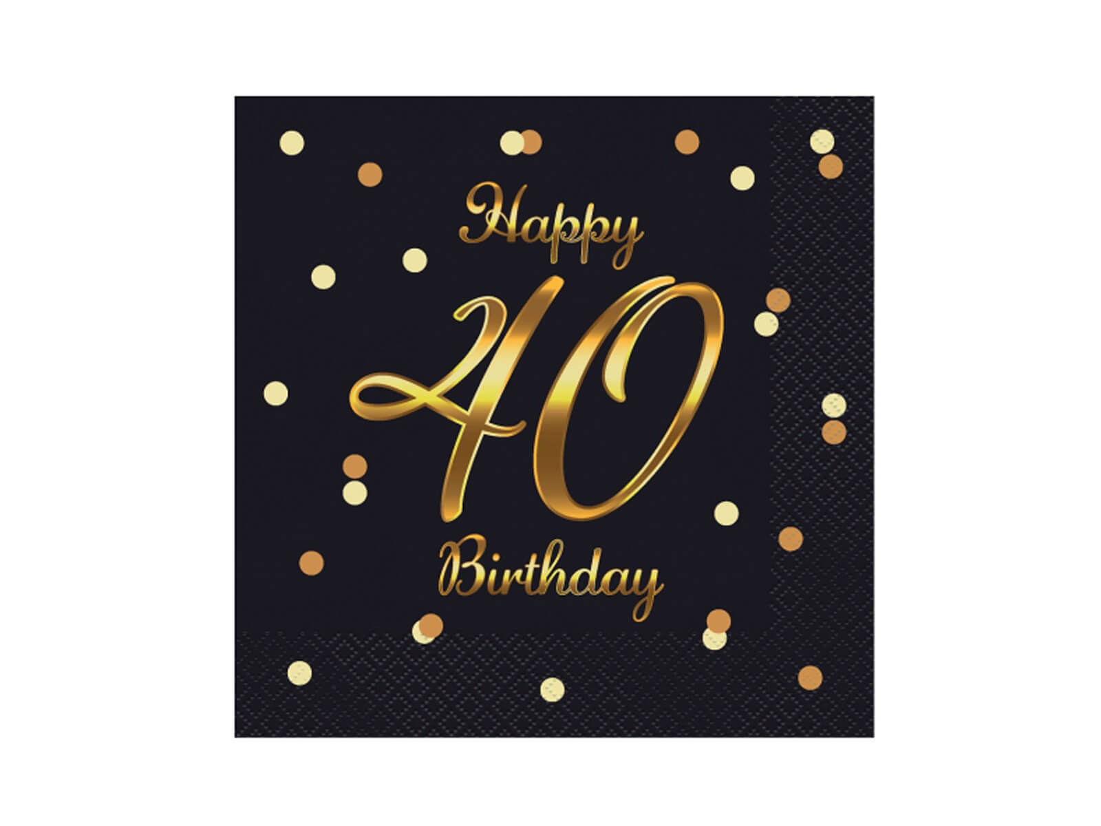 Negyvenedik születésnapi szalvéta fekete - 33 cm - 20 db.