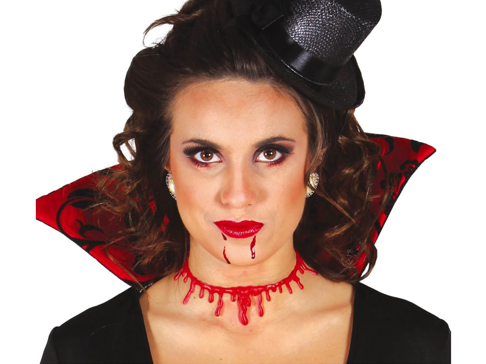• Nyaklánc, amely egy átvágott torokból származó vért imitál, tökéletes kiegészítője a Halloween jelmeznek.