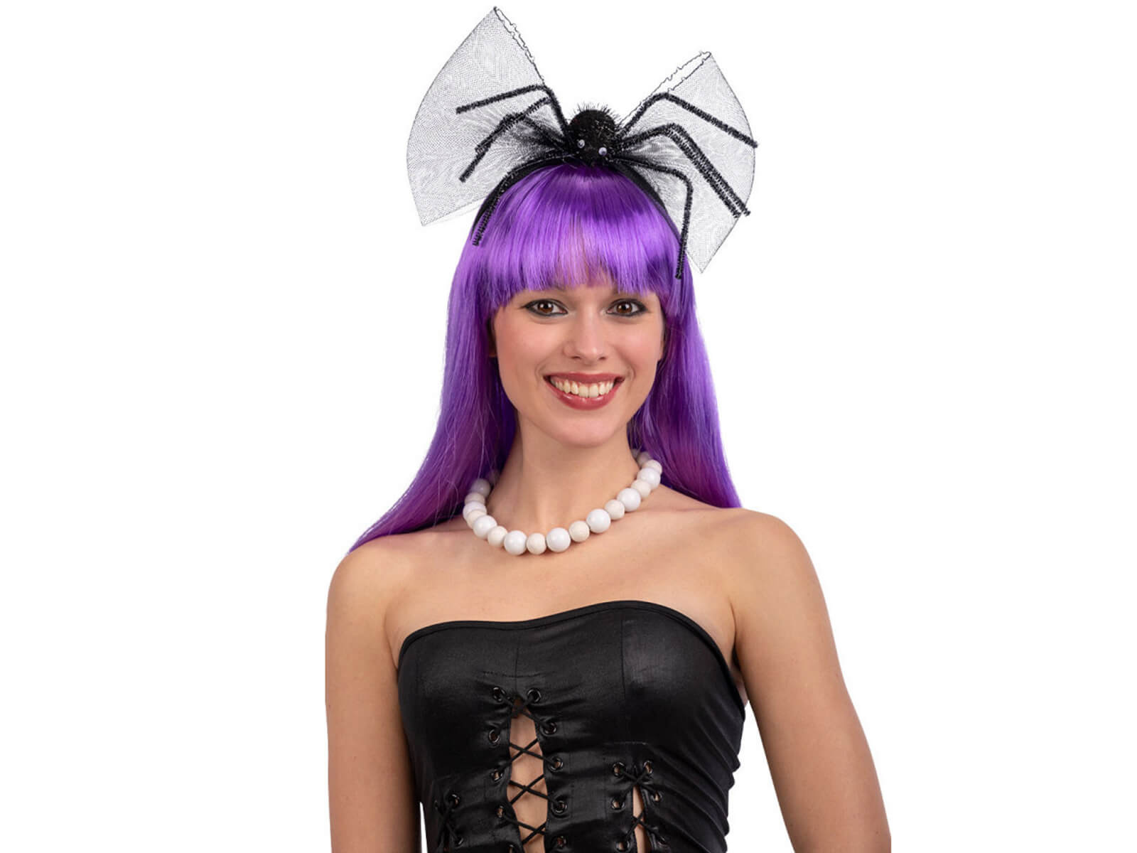 A Halloween kötelező tartozéka! Ez az eredeti fejpánt egy feltűnő masnival és szemet gyönyörködtető pókkal tökéletes választás mindenkinek, aki ki akar tűnni egy Halloween-partin. Azért jött létre, hogy bájt és rejtélyt adjon a jelmezednek, és jól működik a partikhoz és az édességgyűjtéshez egyaránt.