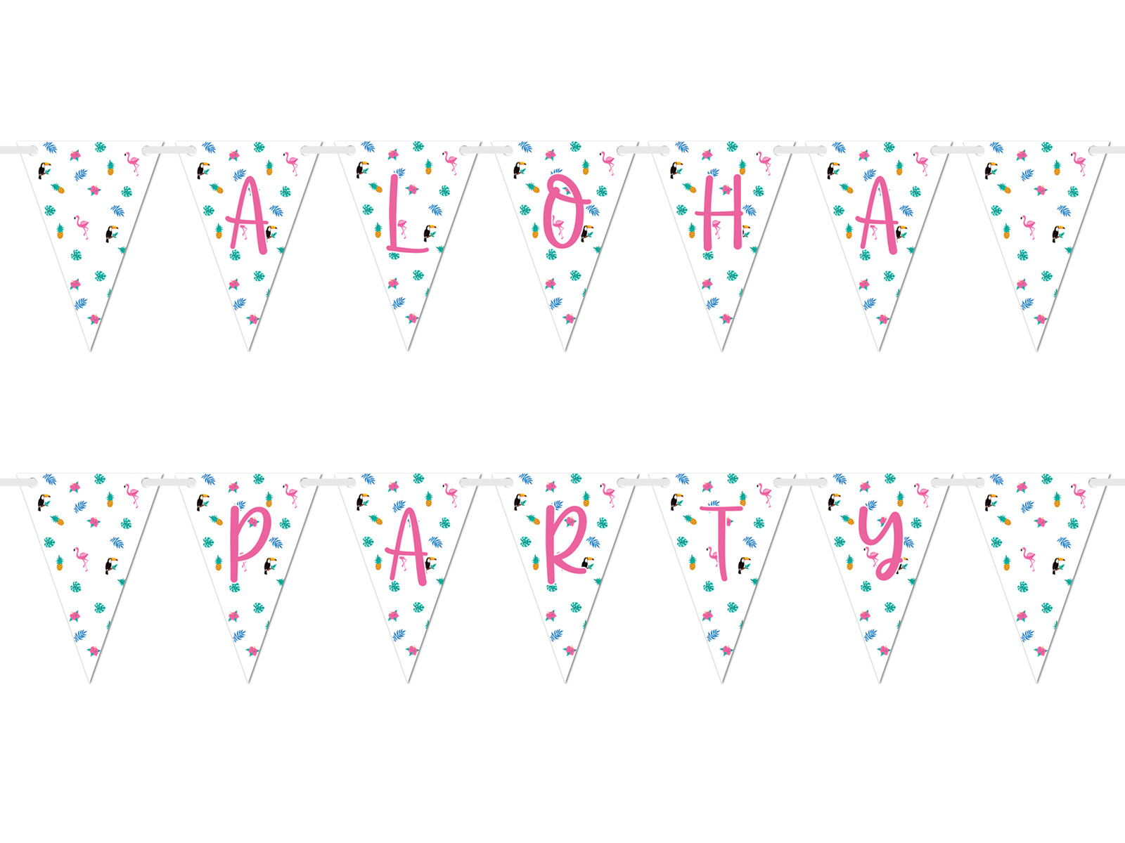 Hozzon egy kis Hawaii ízelítőt az eseményre ezzel a gyönyörű zászlós bannerrel! Ez az egyoldalas banner színes zászlókat tartalmaz, amelyek mindegyike a hawaii kultúra által inspirált mintát ábrázol. Az 500 cm hosszú banner bármilyen térhez igazítható, mivel a zászlók közötti távolság egymástól függetlenül változtatható. A 15 cm-es zászlókkal ez a vidám dekoráció biztosan mosolyt csal a vendégek arcára! Díszítse rendezvényét egyedi módon - egy hawaii témájú zászlós bannerre van szüksége!
