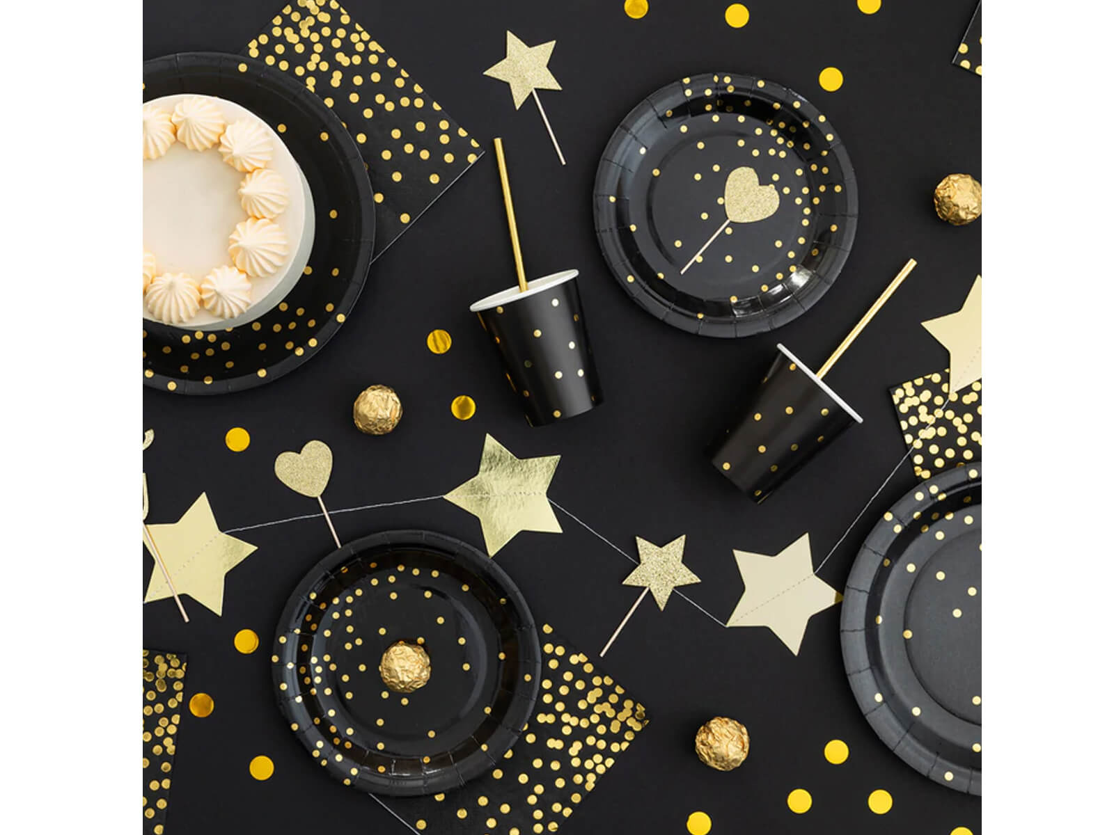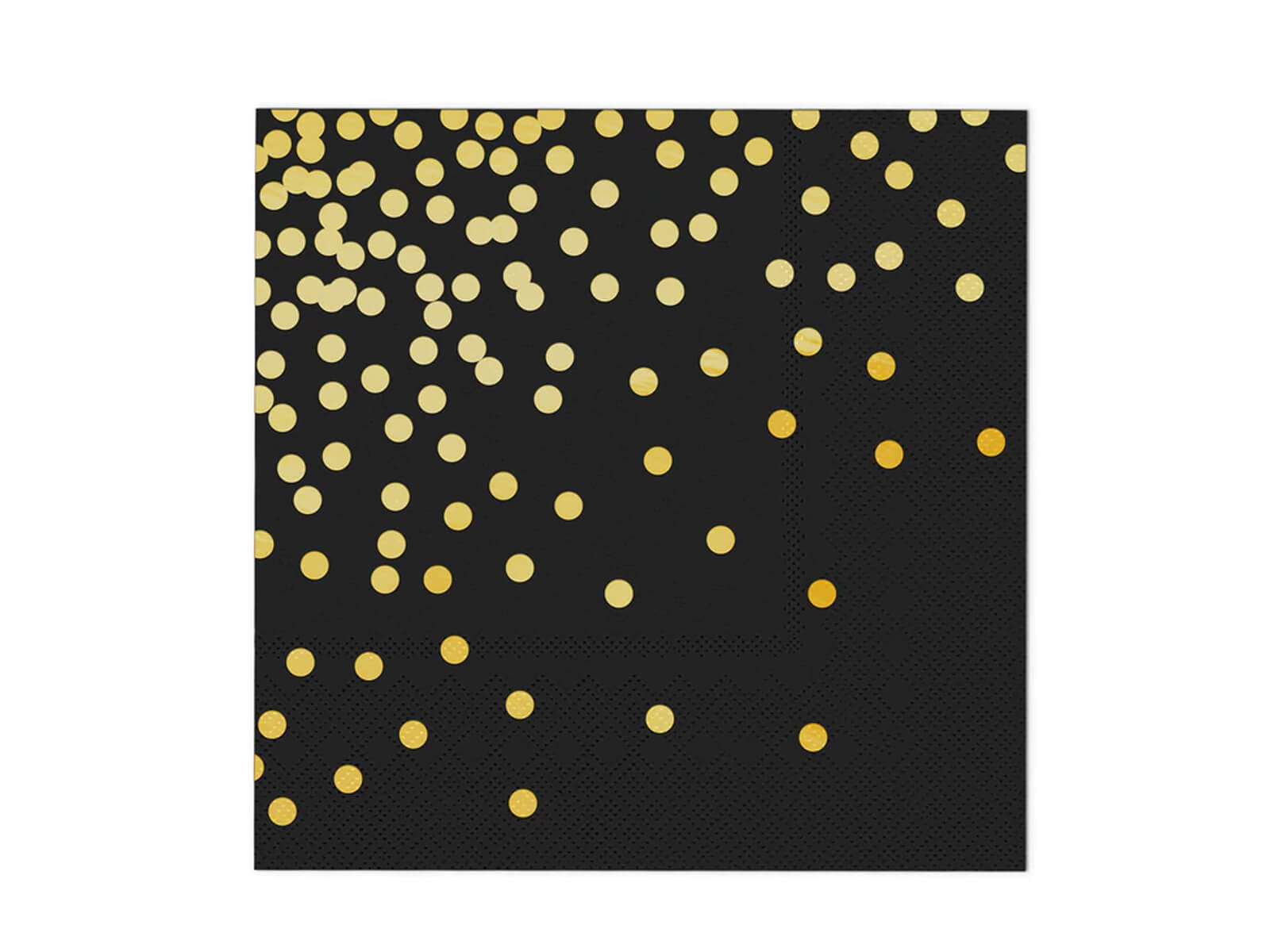 Fekete szalvéták arany pöttyökkel - 33 cm - 10 db.