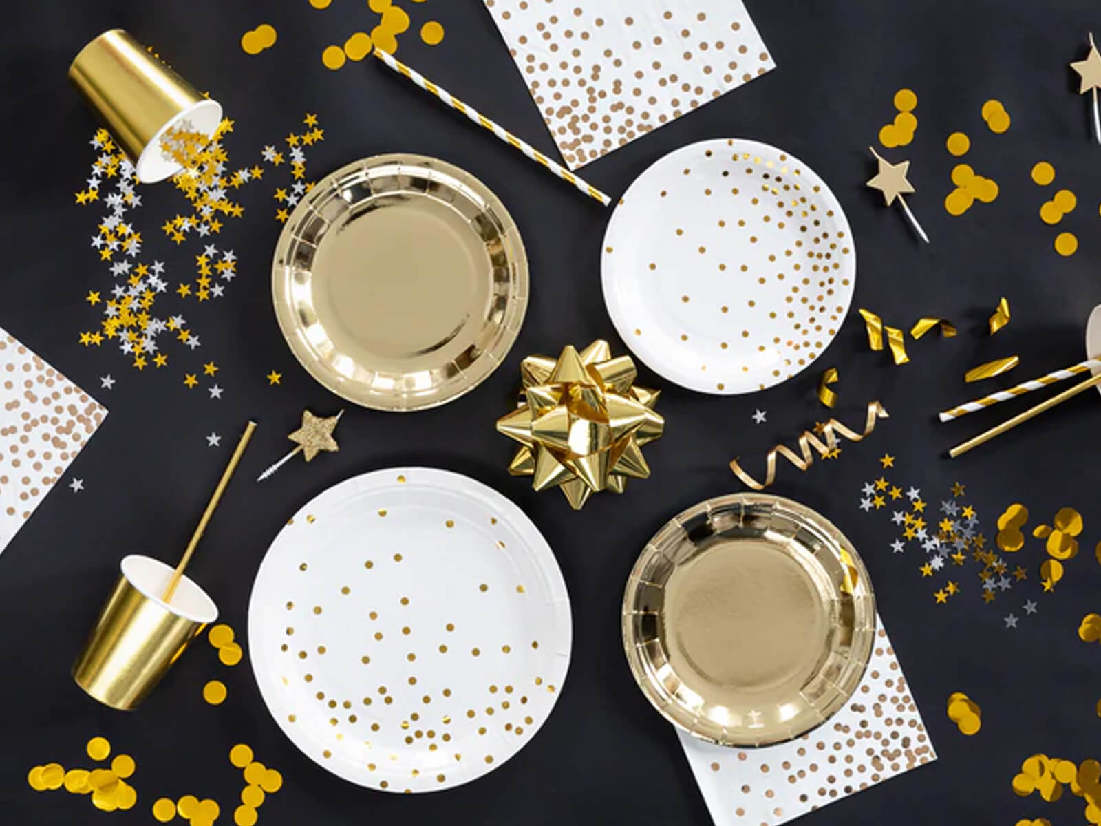 Papírtányérok fehér, arany pöttyökkel - 18 cm - 6 db.