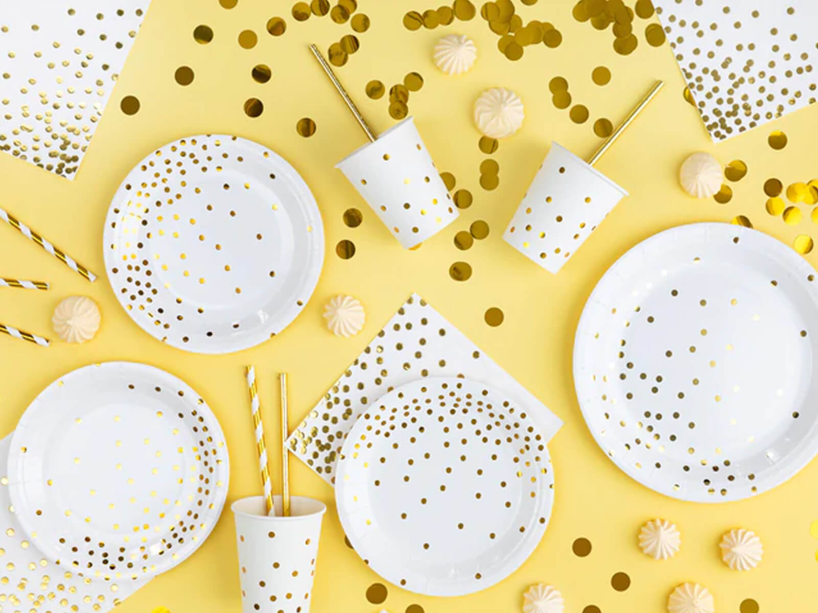 Frissítse fel bármely születésnapi partit ezekkel a fehér, arany pöttyökkel ellátott papírtányérokkal! Bármilyen korú is legyen a gyermeke, ezek az elegáns tányérok extra különlegessé teszik a születésnapját. Átmérőjük 18 cm, és 6 darabos kiszerelésben kaphatók, így könnyedén felszolgálhat vendégeinek egy finom süteményt. Ráadásul papírból készültek, így az ünnepség végeztével nem kell aggódnia az edények miatt! És ha annyira tetszik, miért ne vásárolna egy másik csomagot a következő partikra?? Ezek az elegáns kis tányérok biztosan sikeresek lesznek bármelyik gyermek születésnapi partiján... és így tovább!