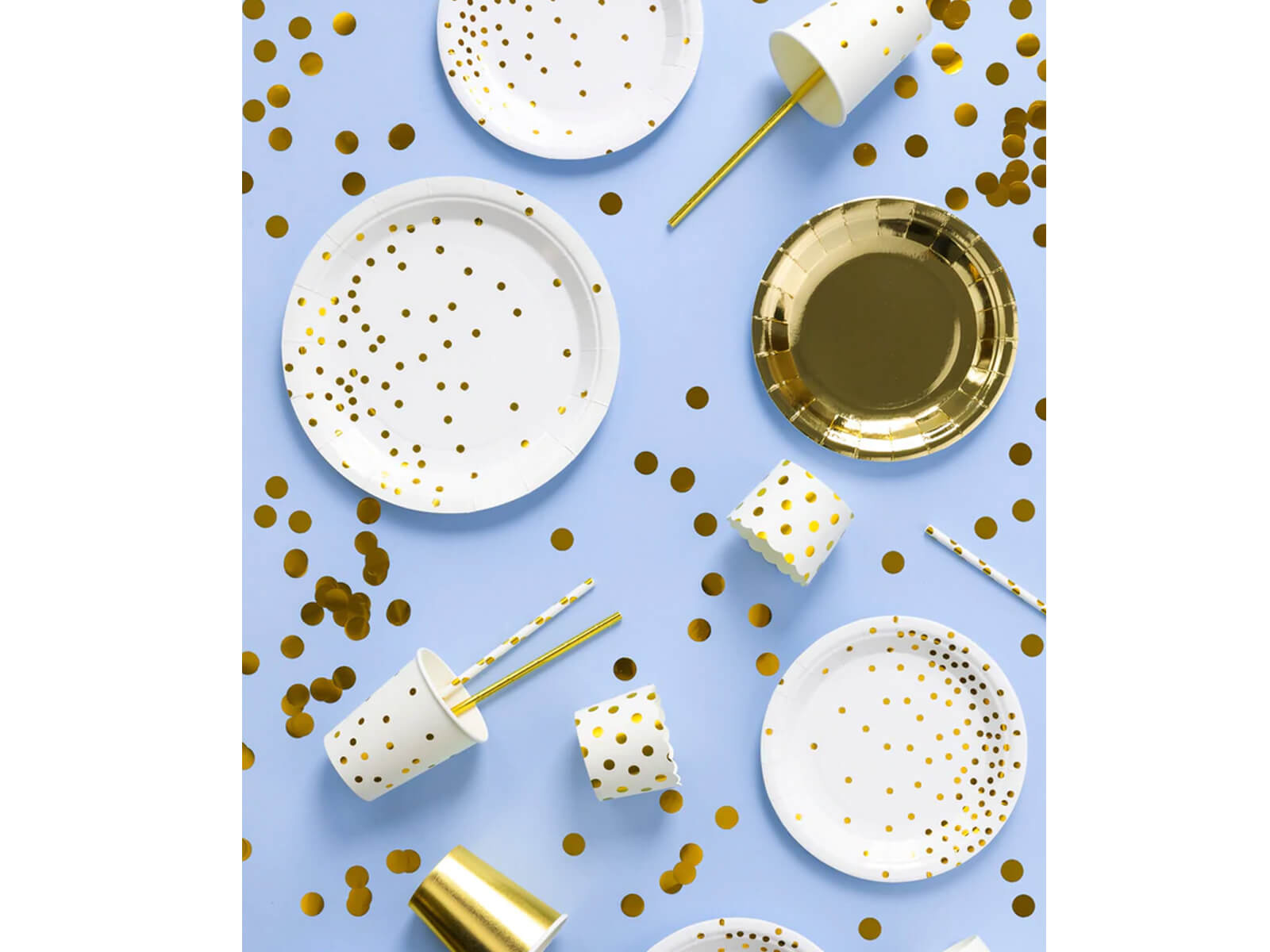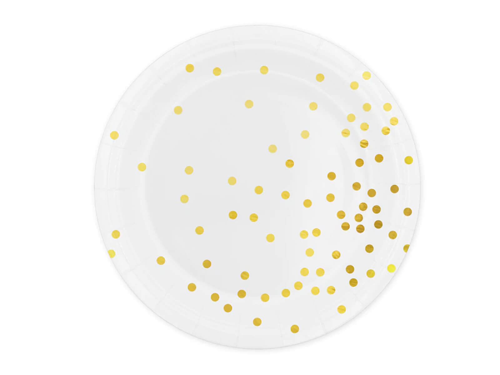 Papírtányérok fehér arany borsóval - 23 cm - 6 db.