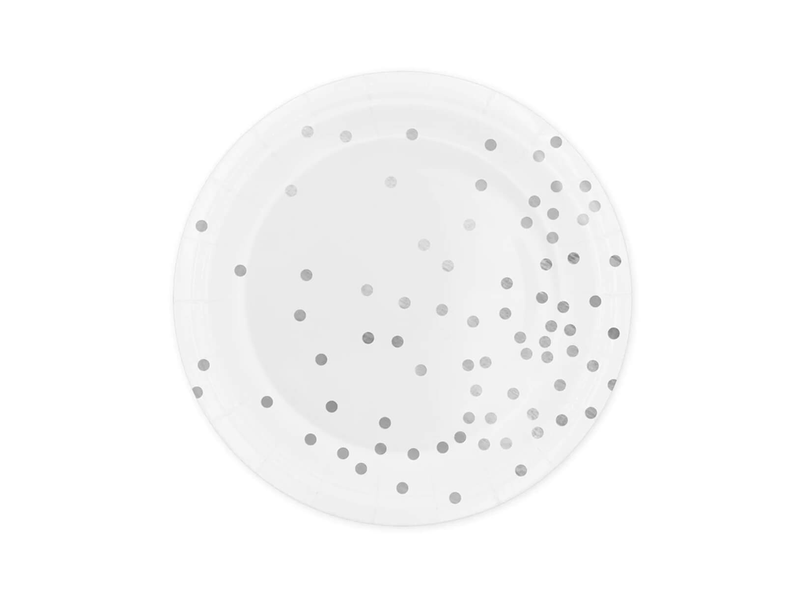Fehér papírtányérok ezüst pöttyökkel - 18 cm - 6 db.