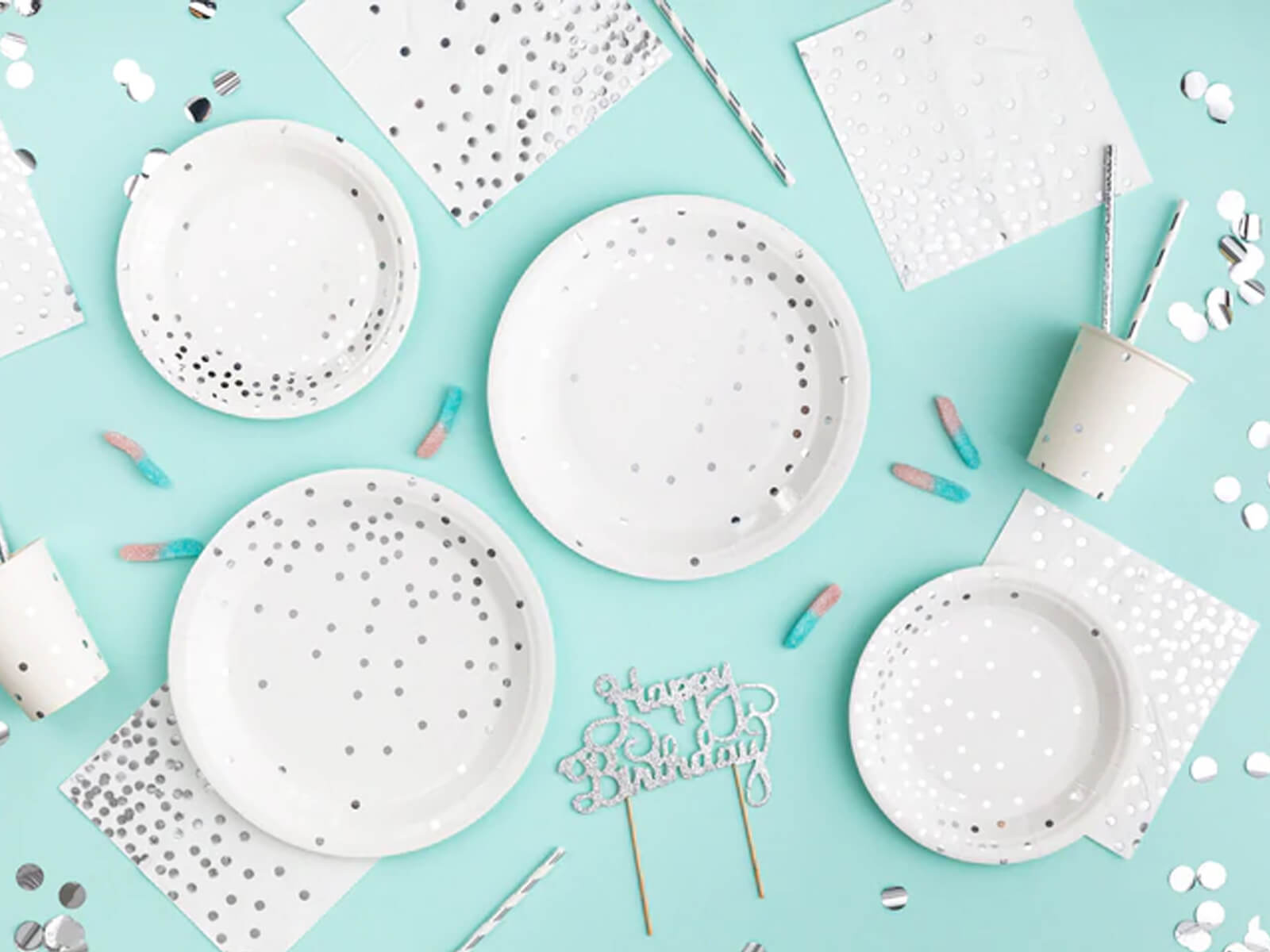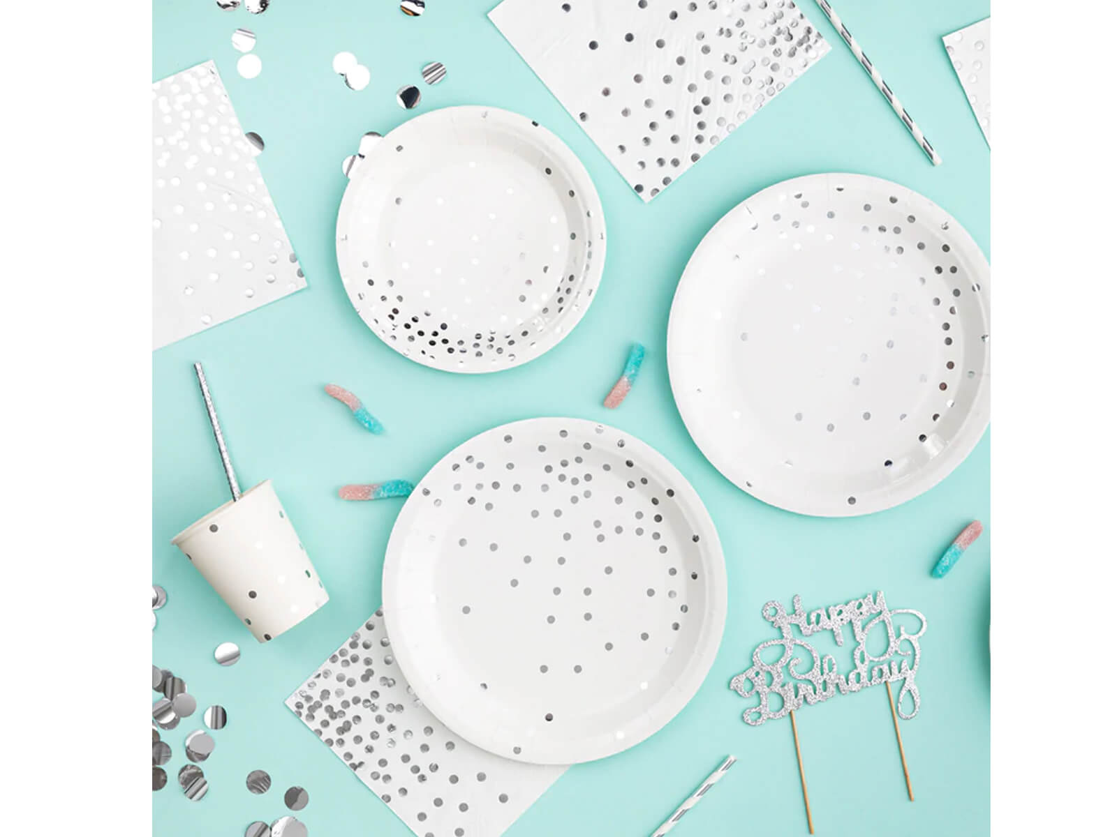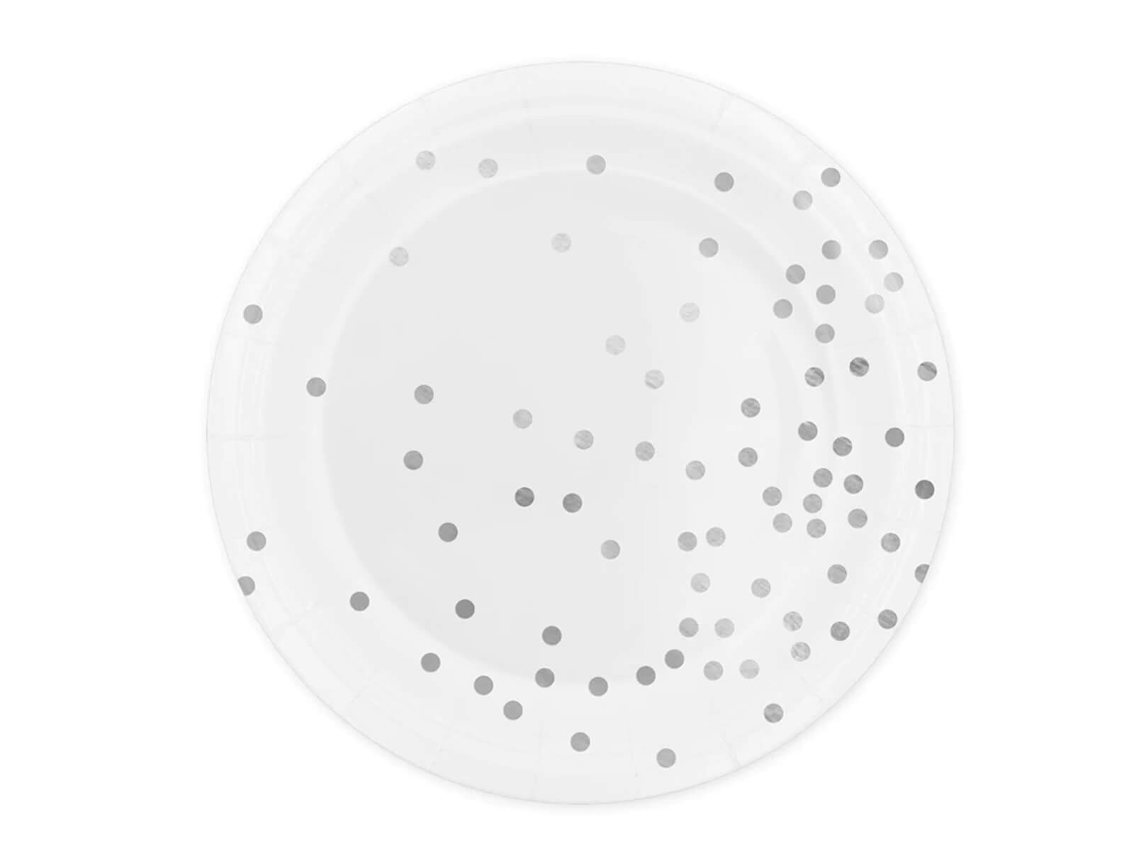 Papírtányérok fehér, ezüst pöttyös - 23 cm - 6 db.