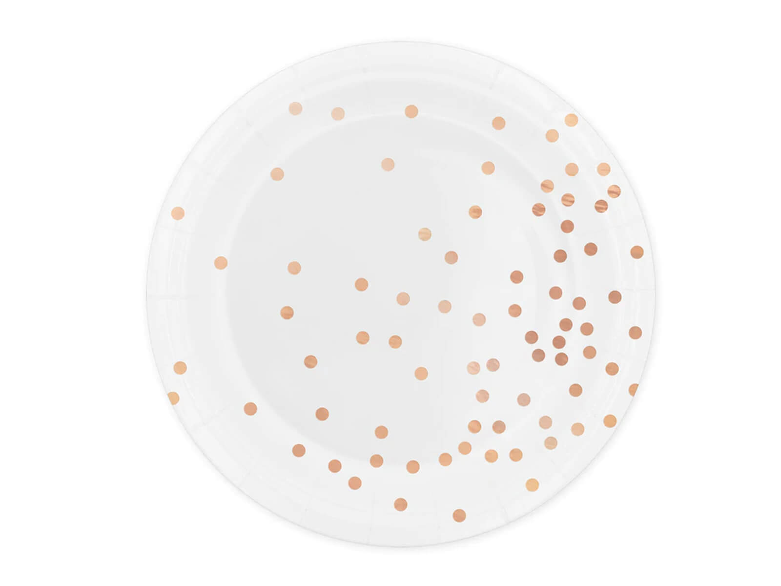 Fehér papírtányérok rózsaszín és arany pöttyökkel - 23 cm - 6 db.