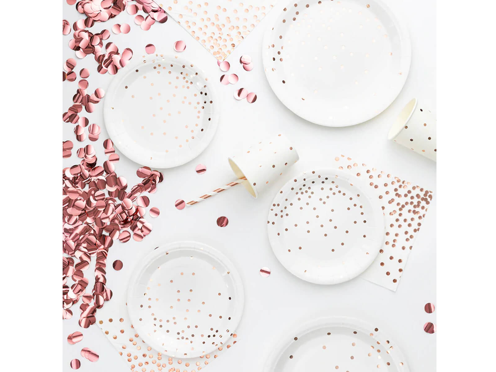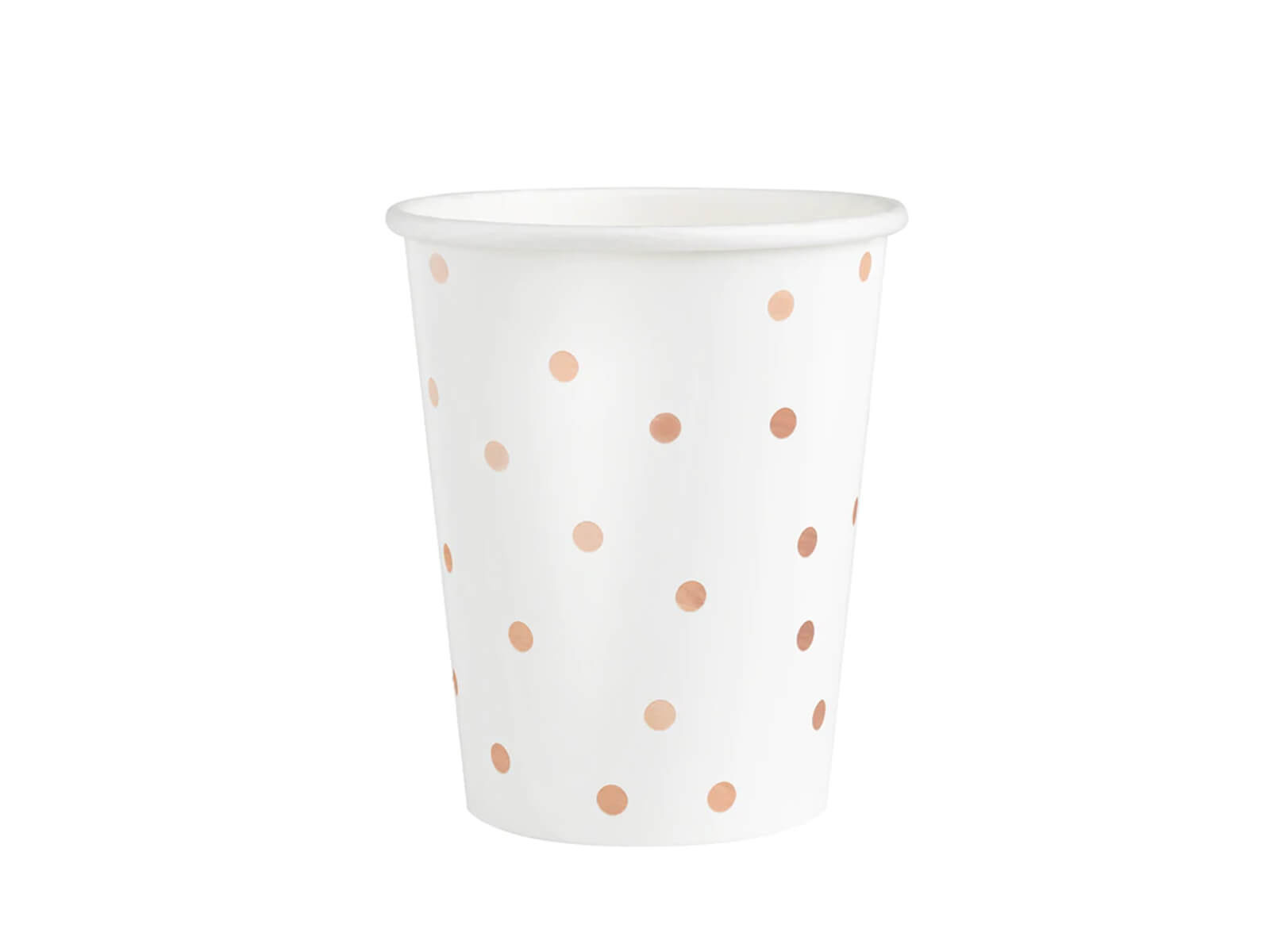 Fehér papírpoharak rózsaszín és arany pöttyökkel - 220 ml - 6 db.