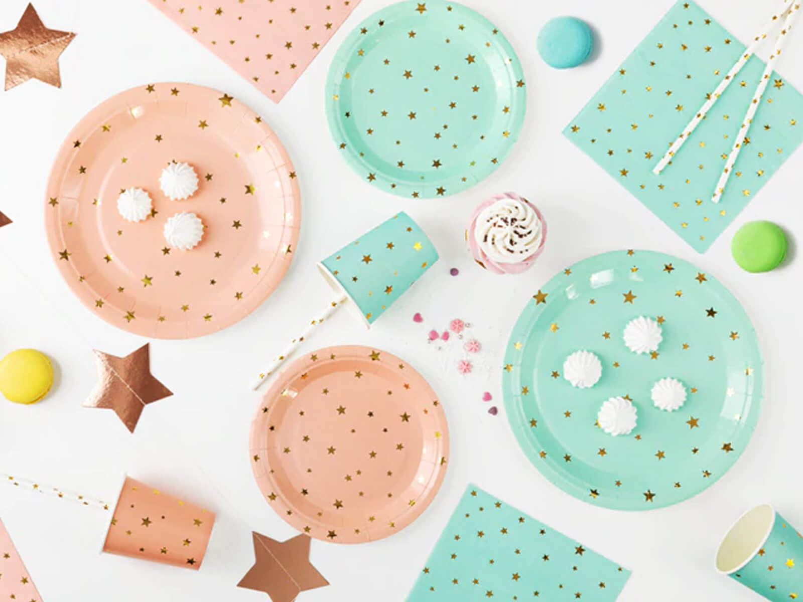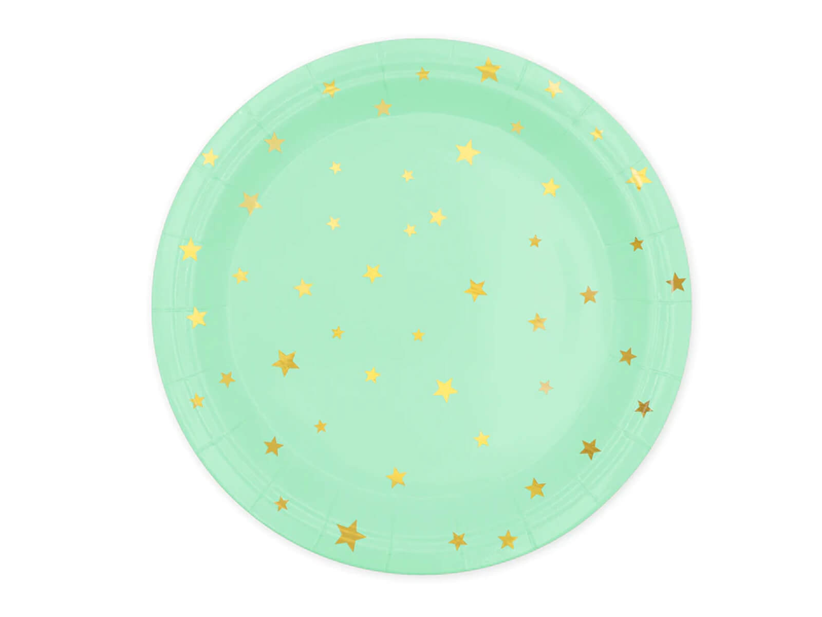 Menta papírtányérok arany csillagokkal - 23 cm - 6 db.
