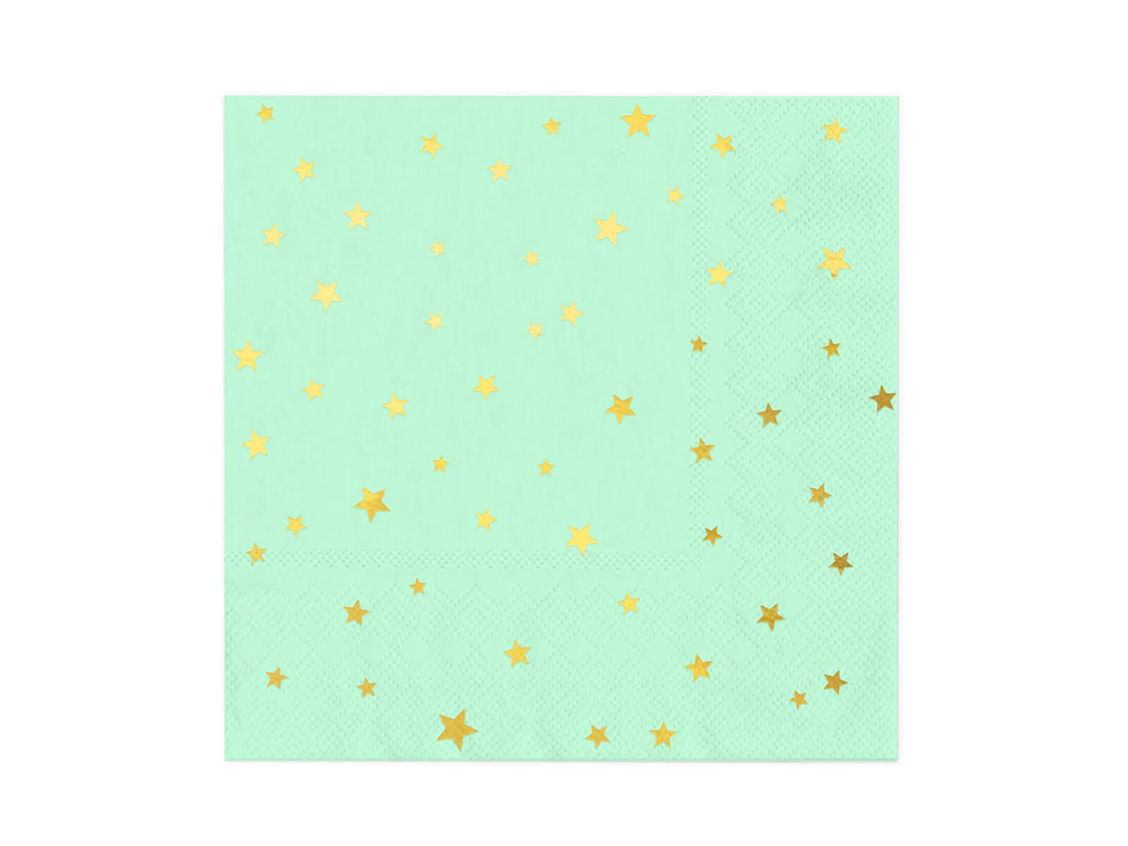 Menta szalvéták arany csillagokkal - 33 cm - 10 db.