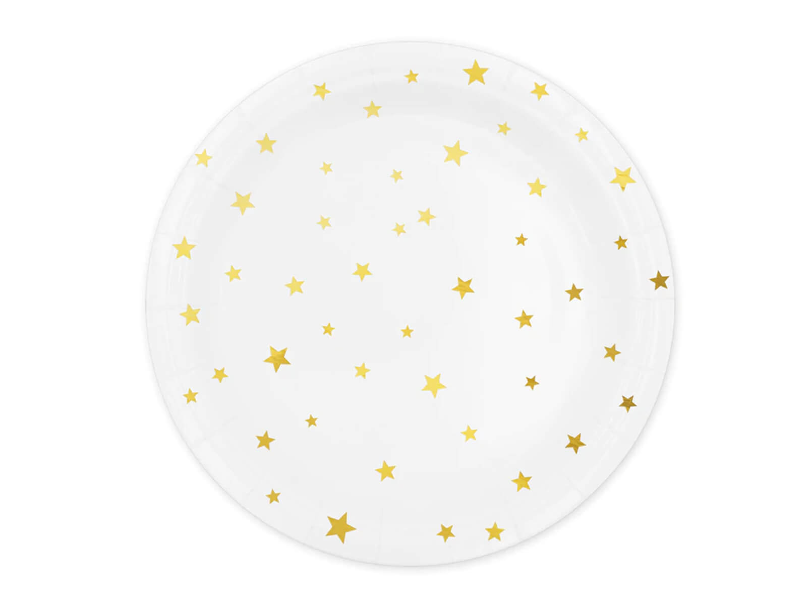 Papírtányérok fehér, arany csillagokkal - 23 cm - 6 db.