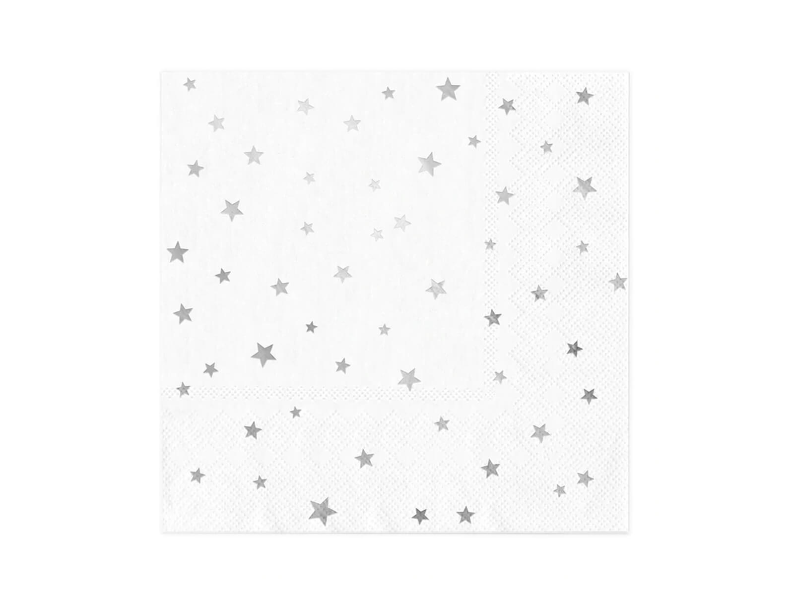 Fehér szalvéta ezüst csillagokkal - 33 cm - 10 db.