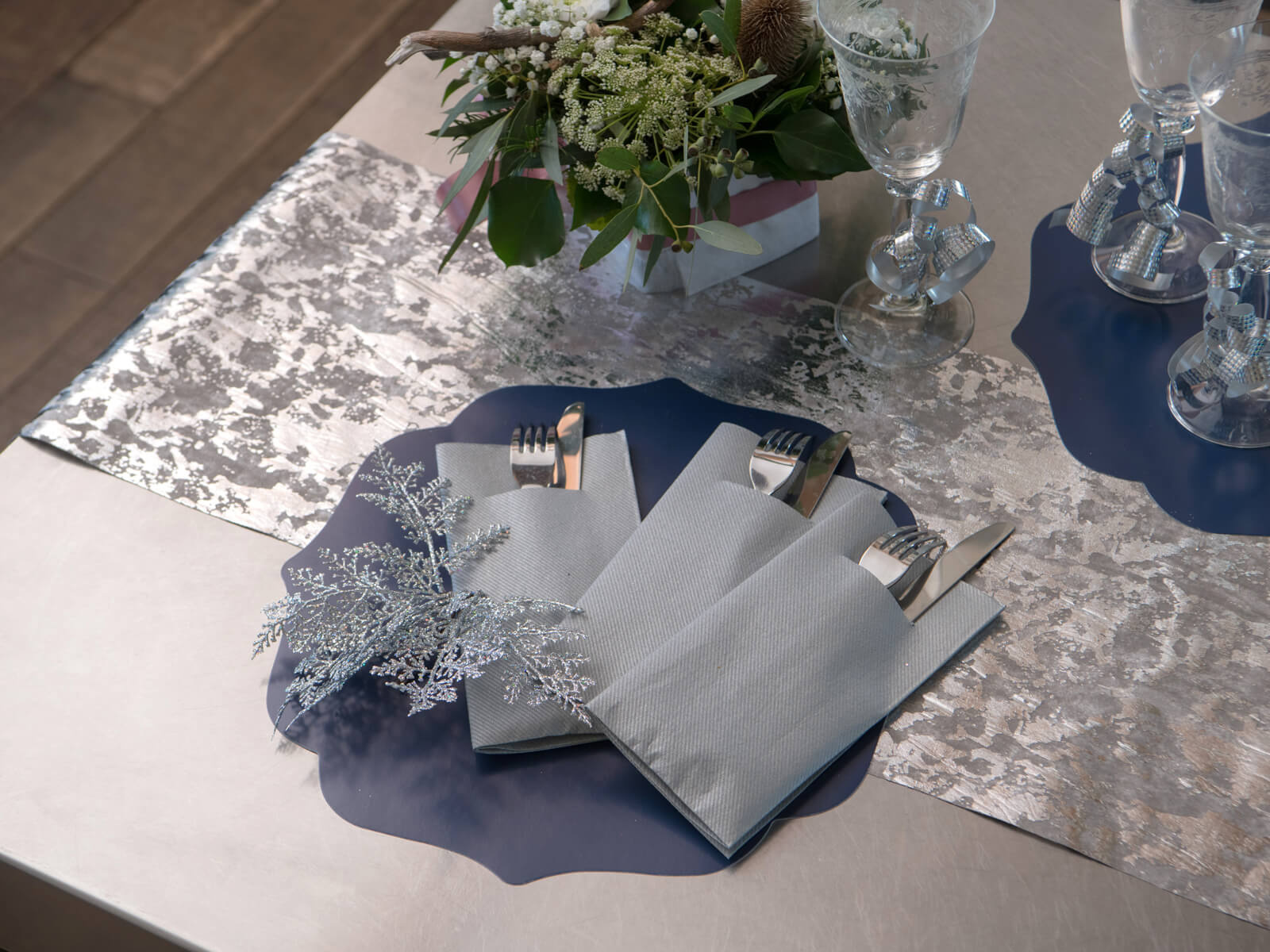 Fém asztali futó dekoráció - ezüst - 28 cm x 2,5 m - 1 db.