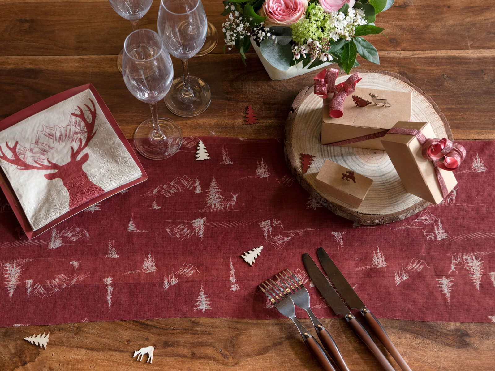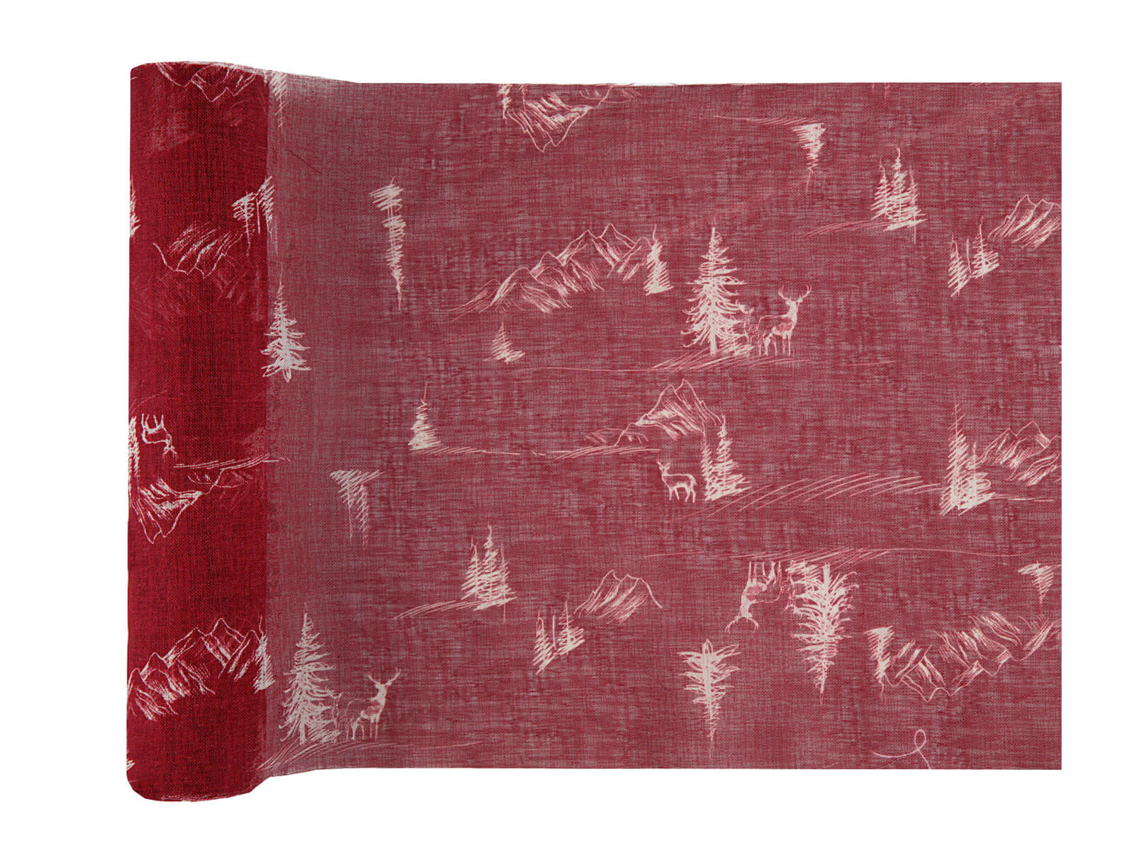 Hozza a karácsonyi tájak varázsát egyenesen az asztalára az egyedi "King of the Forest" asztali futónkkal. Kifinomult bordó szín a szarvasokat, fákat és hegyeket ábrázoló téli nyomtatással kombinálva felejthetetlen hangulatot teremt karácsonykor. A futó finom gézből készült, ami növeli a könnyedséget és az eleganciát.