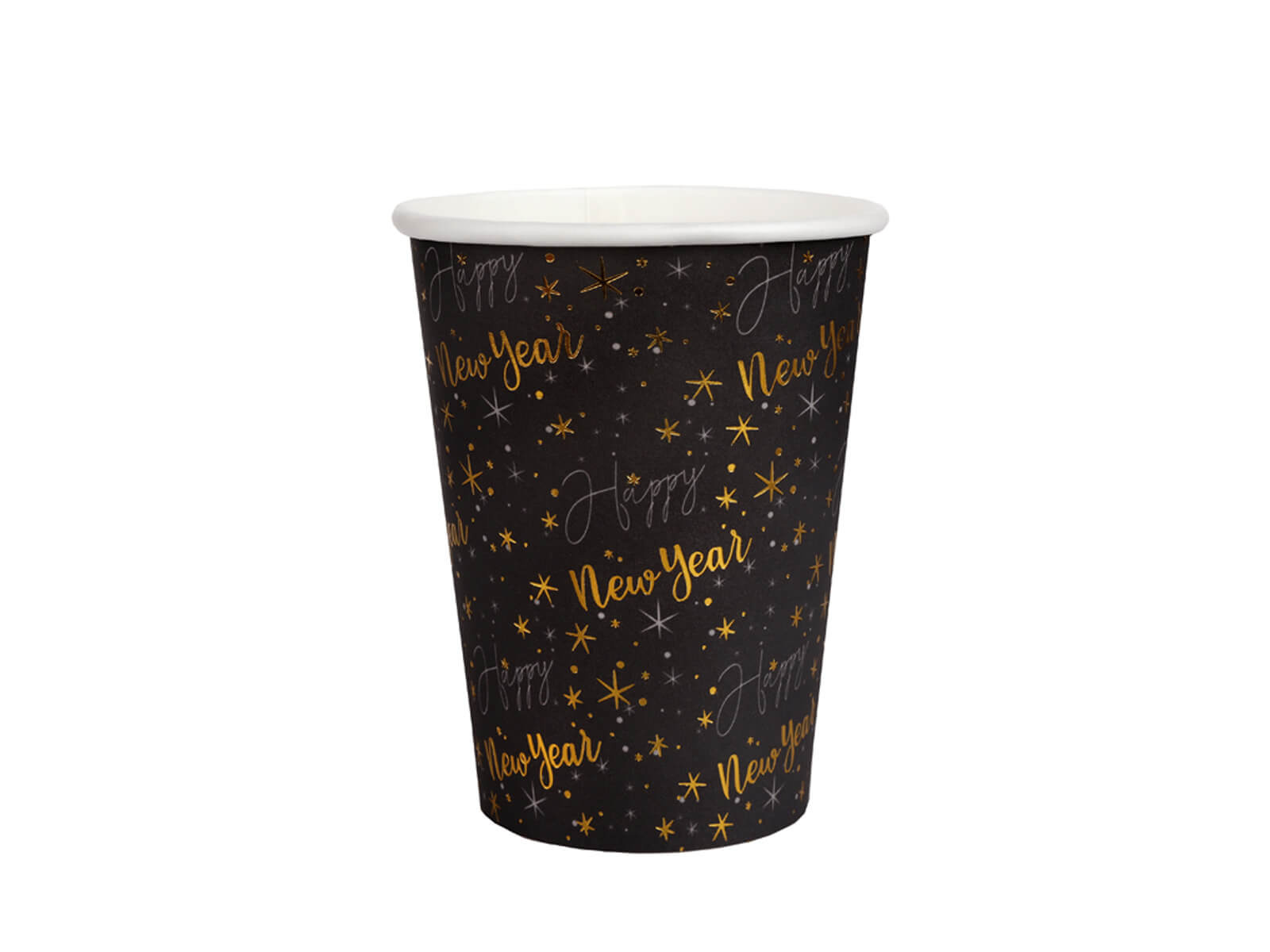 Papírpoharak szilveszterre Boldog új évet - fekete - 270 ml - 10 db.