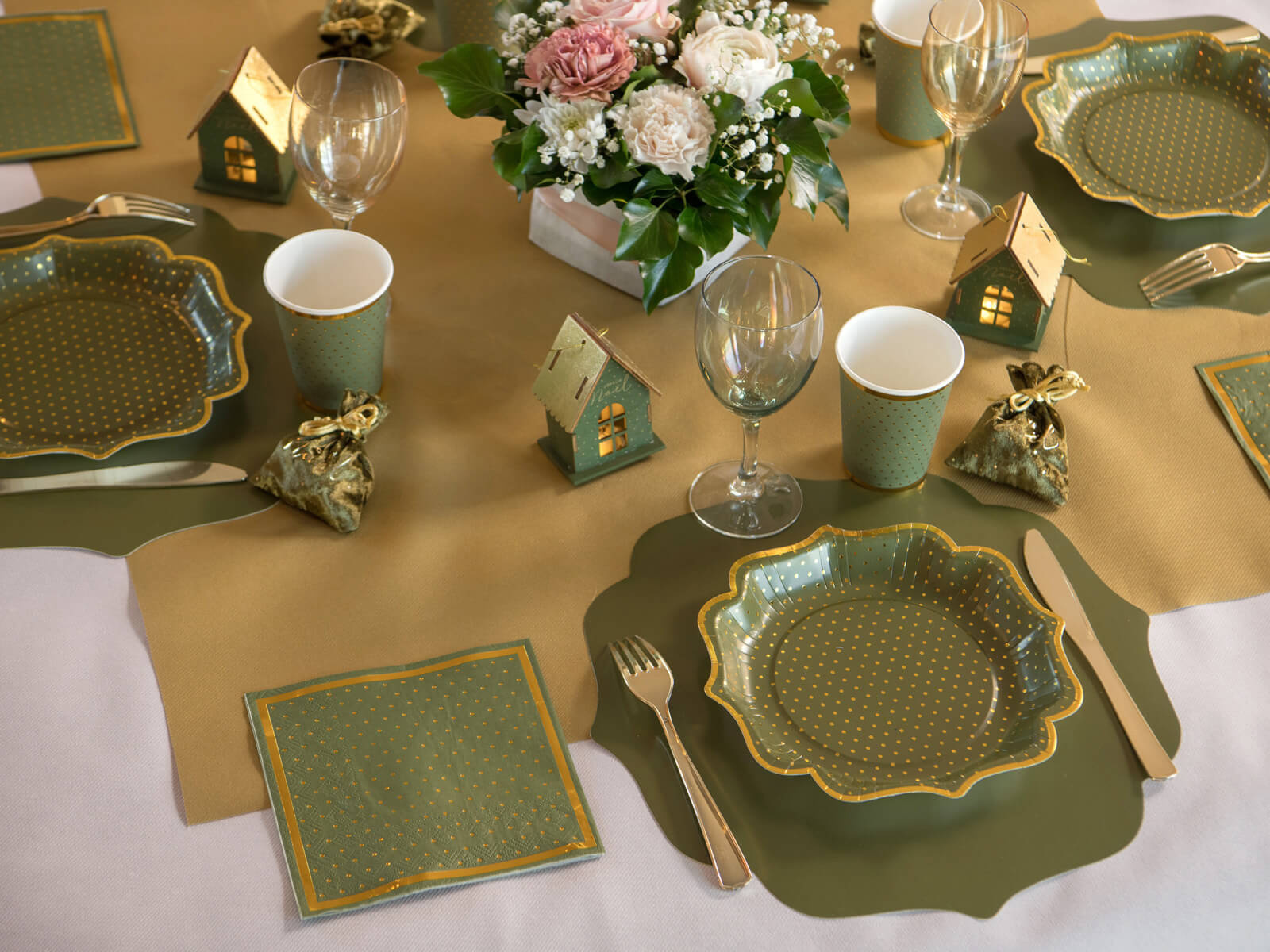 Olívazöld papírszalvéta arany pöttyökkel - 33 cm - 20 db.