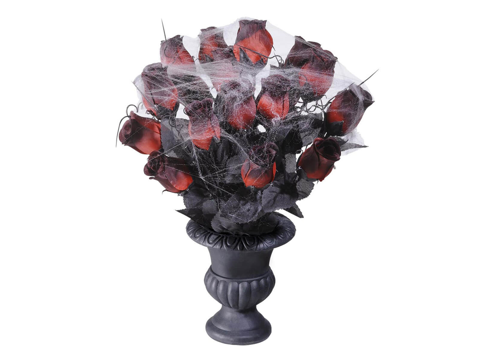 Biztosítson egy felejthetetlen pillanatot Önnek és vendégeinek a vörös rózsák és a pókháló vázával. Rendeljen még ma, és érezze a valódi Halloween hangulatát a partin!