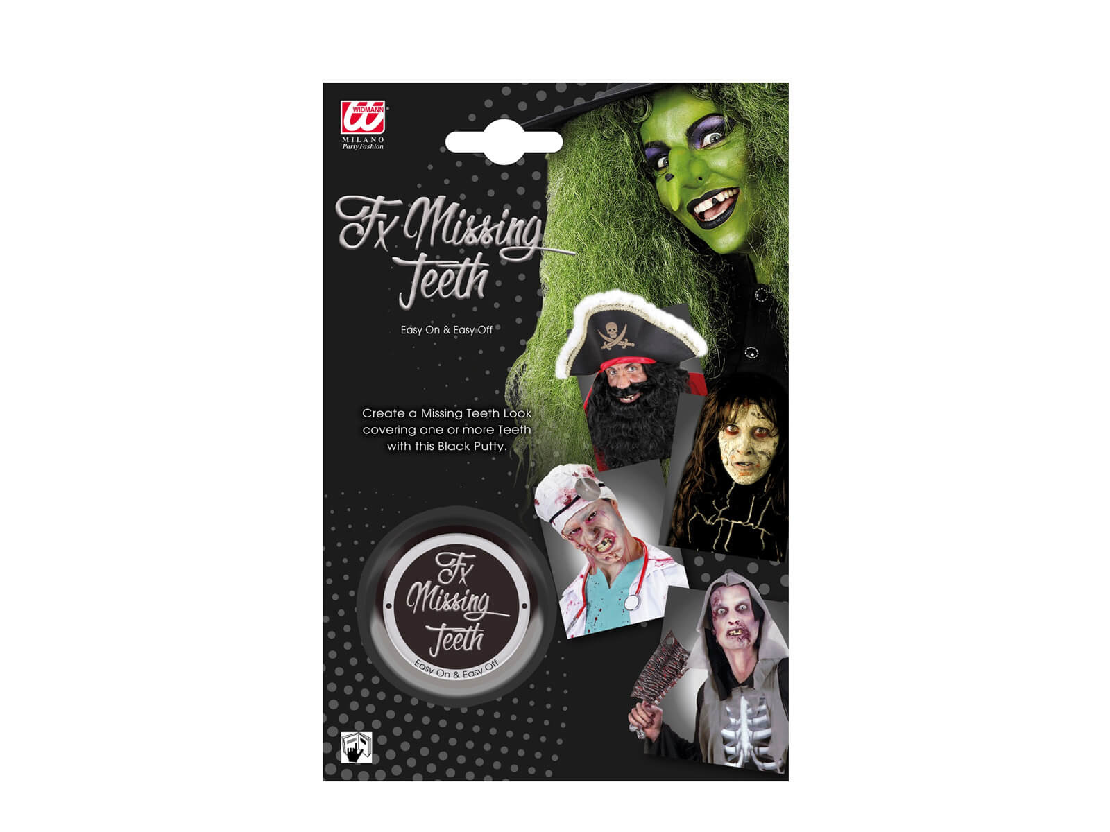Fedezze fel az átalakulás erejét a festékkel 'Hiányzó fog'". Tökéletes kiegészítője a halloweeni sminkednek, hogy azonnal meggyőző boszorkánnyá vagy bármilyen más karakterré válj, akinek hiányzik egy foga. Egyszerű módja annak, hogy valósághűen kiegészítsd a kísérteties ruhádat.