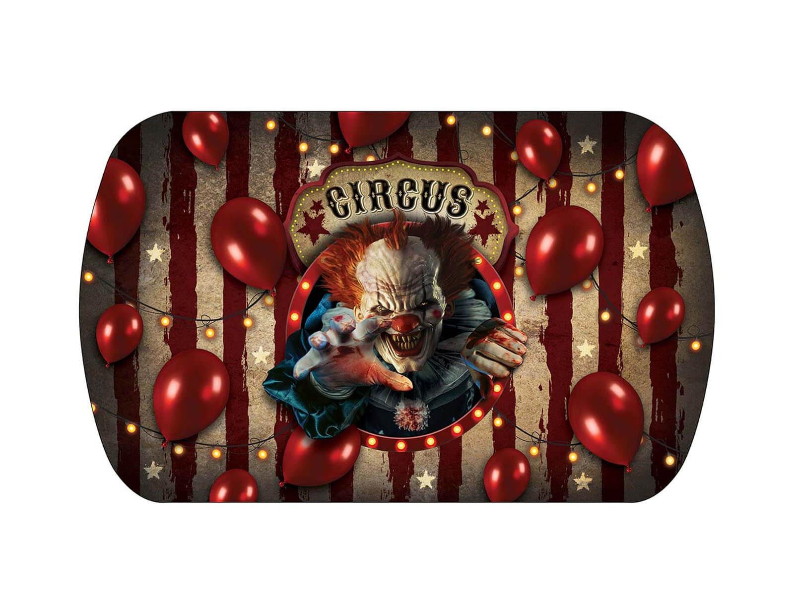 • Cirkuszi témájú tálca kísérteties bohóc nyomtatással, tökéletes halloweenre. Édes tál.