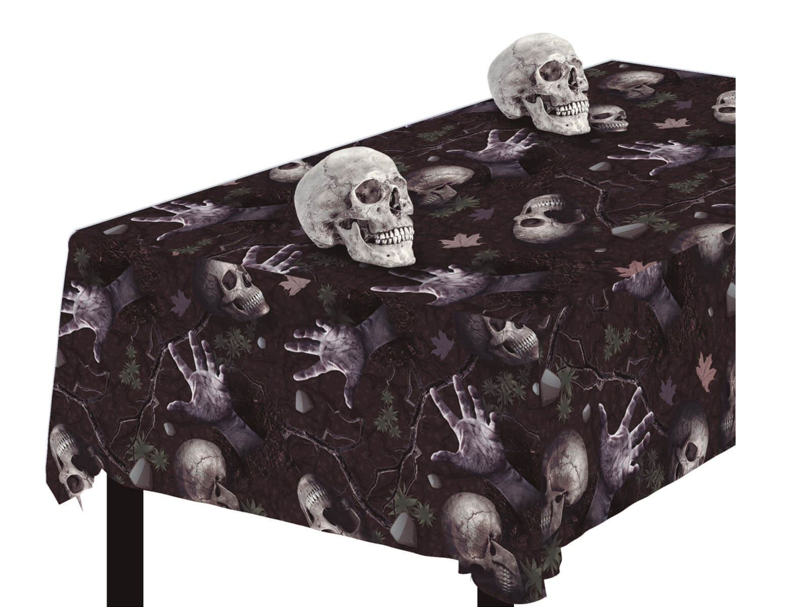 Kiváló minőségű fóliából készült, nemcsak tartós, hanem könnyen tisztítható is, így tökéletes választás egy Halloween partira. De ez még nem minden. Az asztalterítőt koponyák és kezek egyedi nyomtatása díszíti, ami egyedi, kísértetiesen elegáns hatást kölcsönöz neki.