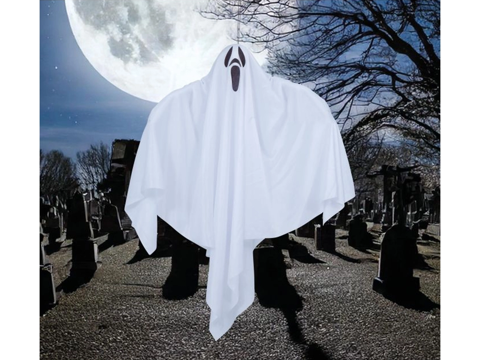 Ez az izgalmak és a szórakozás ideje! Díszítse otthonát Halloweenre a mi lógó szellem dekorációval. Ez az egyedülálló, 80 cm magas, függő szellem biztosan magára vonzza a látogatók és a járókelők figyelmét. Tökéletes kiegészítő a hátborzongató hangulat megteremtéséhez Halloween partikhoz.