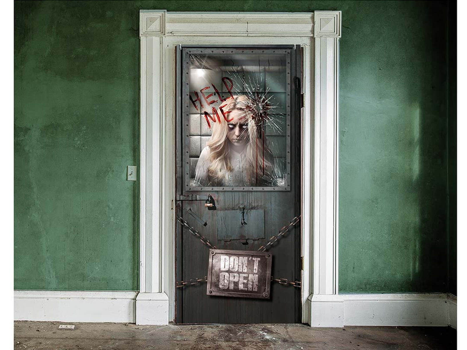 Válassza az eredetiséget és a felejthetetlen hangulatot az év legborzongatóbb éjszakáján!. Adjon magának és vendégeinek felejthetetlen élményt az ajtódíszítésünkkel "Pszichiátriai"!