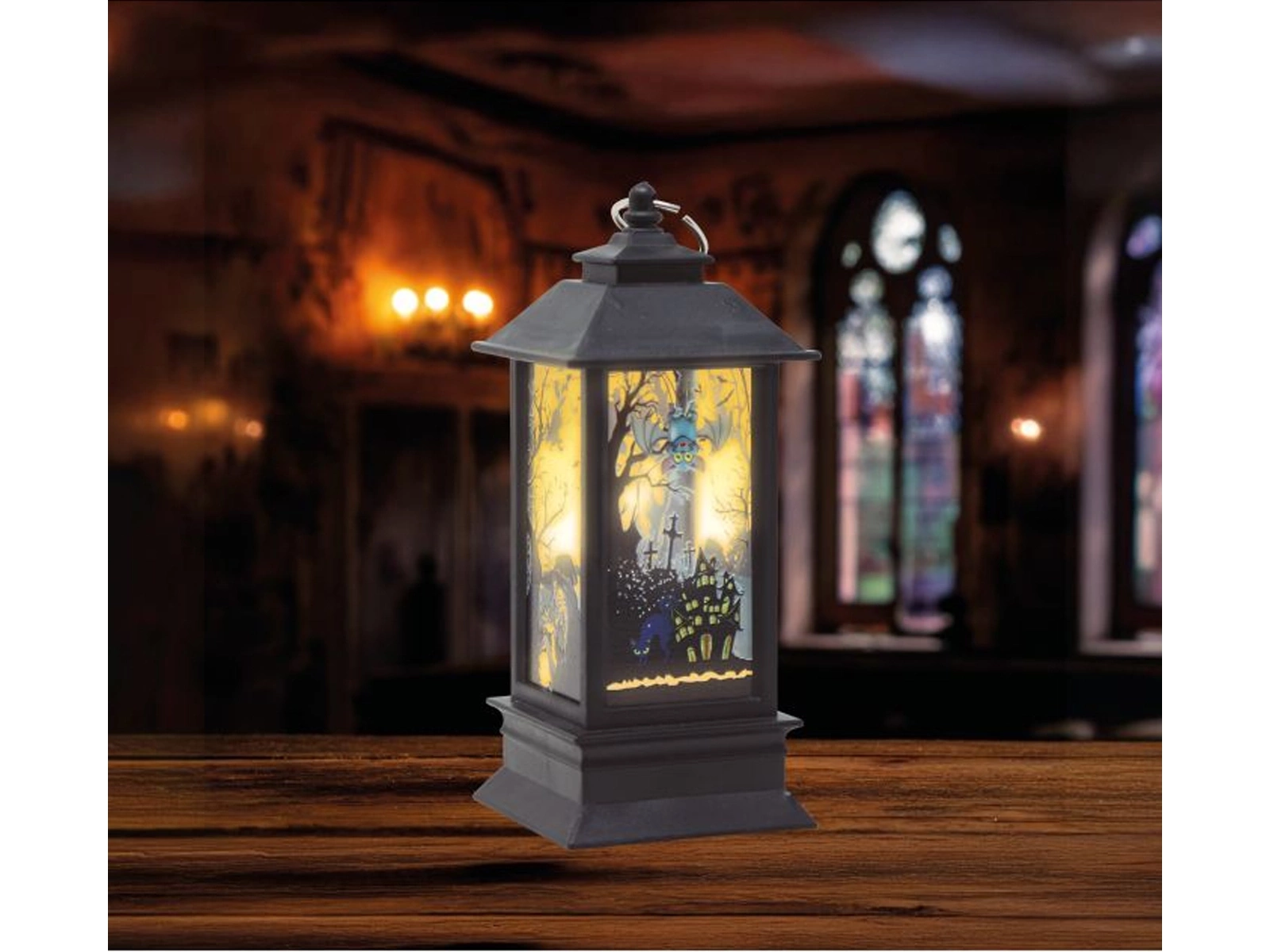 Ez a Halloween kísértetház lámpa hangulatos megvilágítást ad az Ön rendezvényéhez. Elhelyezheti a szobában, a verandán vagy a kertben, hogy titokzatos és varázslatos légkört teremtsen. Egyszerűen kapcsolja be a lámpa belsejében lévő fényt, és élvezze a hatást, amit létrehoz.
