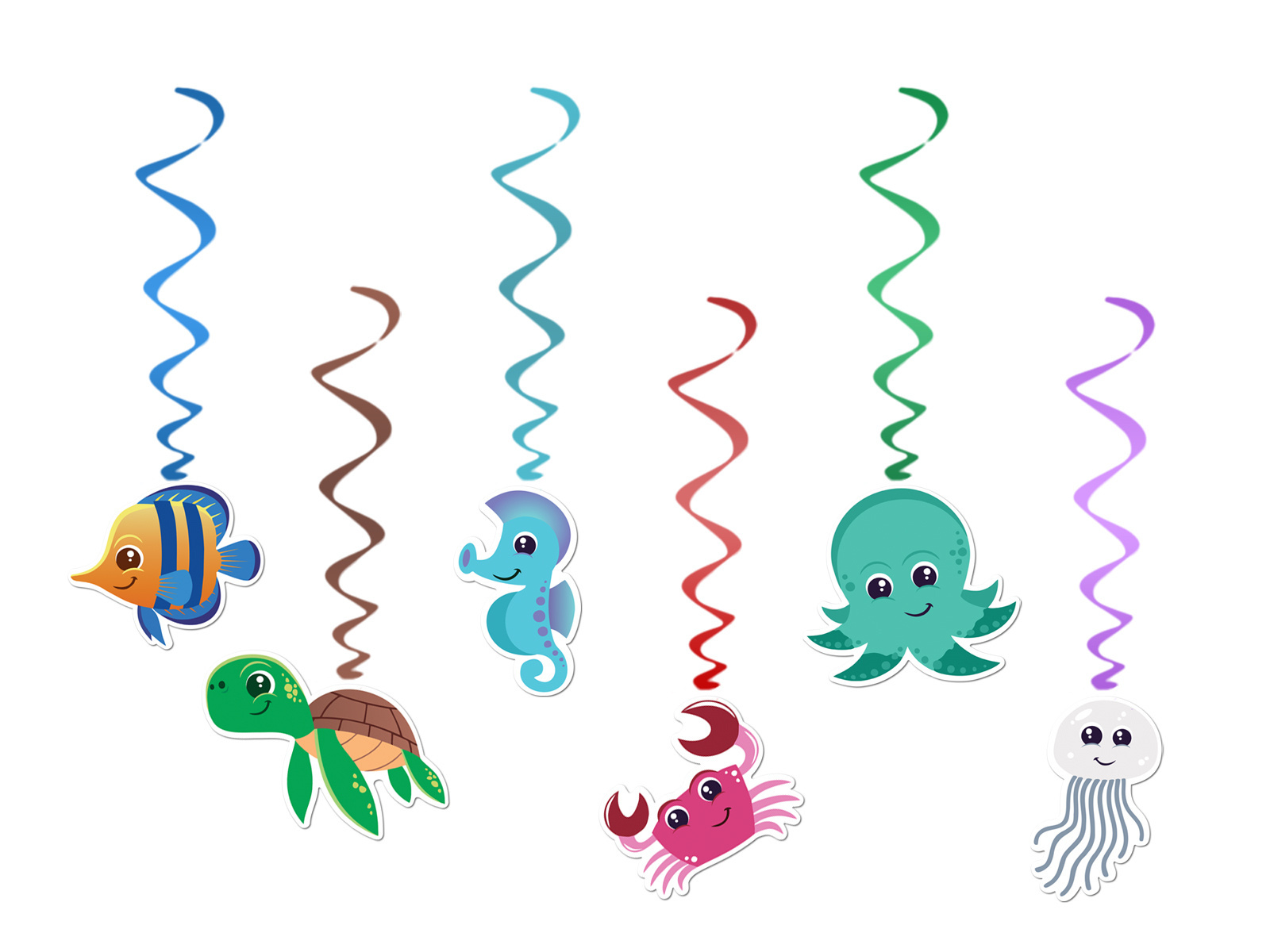 Függő születésnapi dekoráció Víz alatti világ - 6 db.