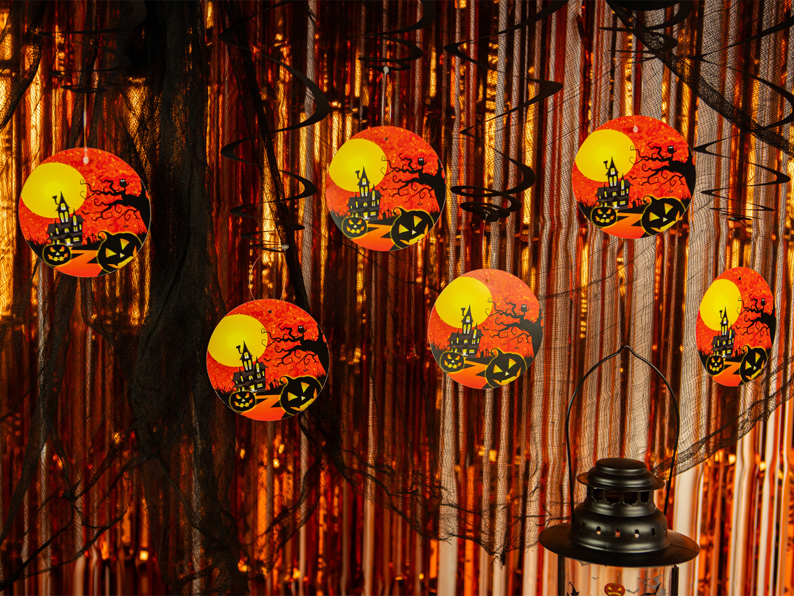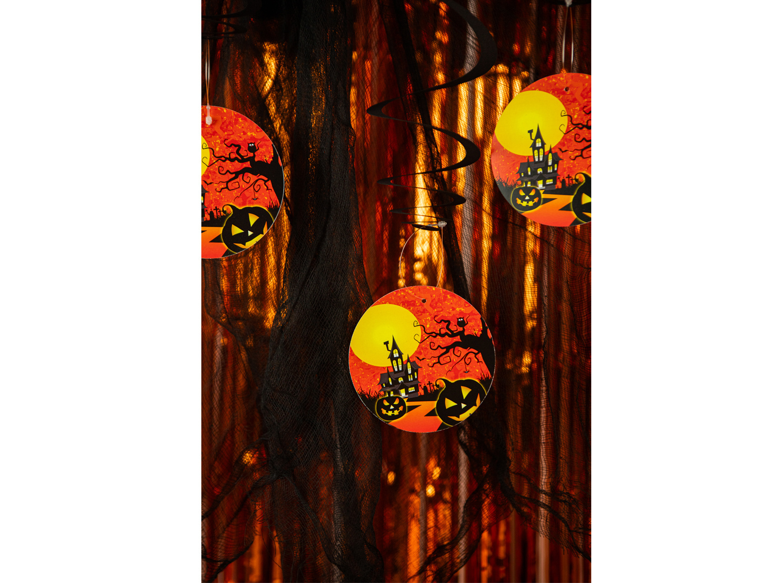 Alakítsa át szobáját egy titokzatos kísértetházzá a 6 darabból álló "Swiders - Haunted House" függő dekorációval. A készlet minden darabja egy kísérteties házat ábrázol, amelyet sütőtök, denevérek és egy bagoly vesz körül, ami felejthetetlen hangulatot kölcsönöz Halloween idején.