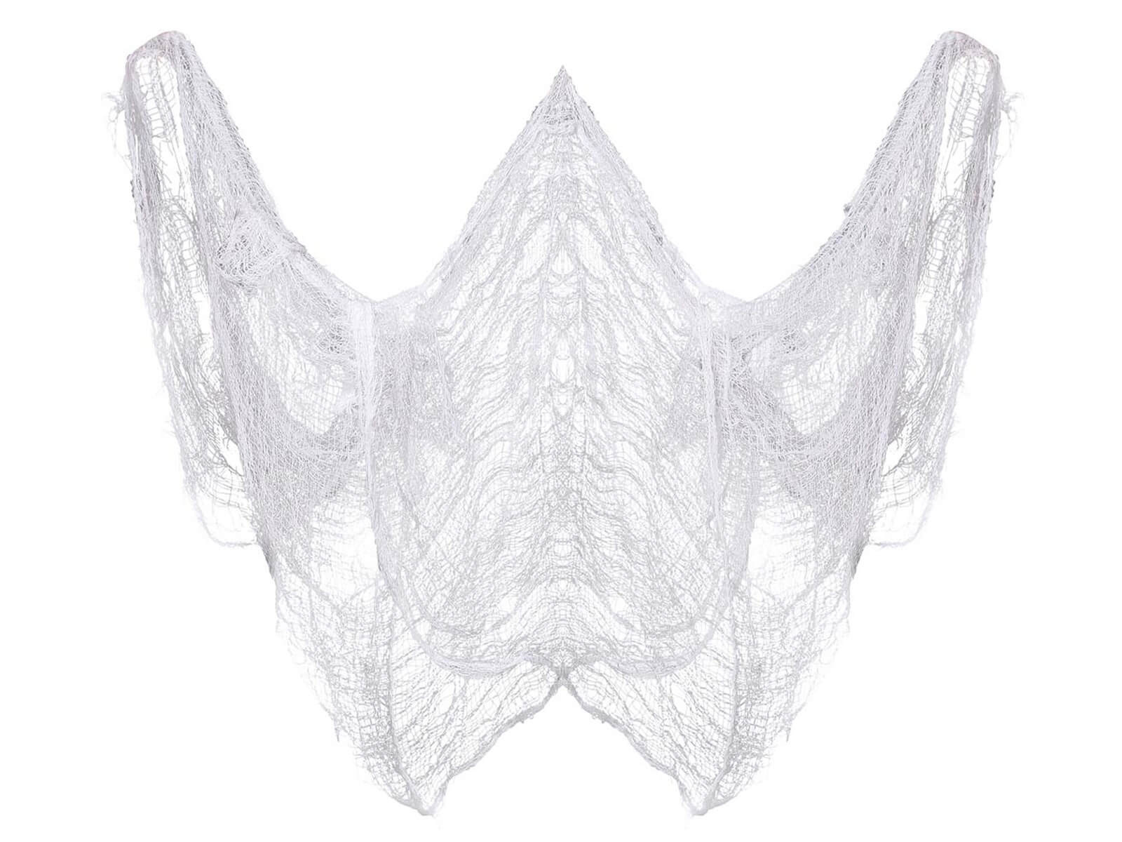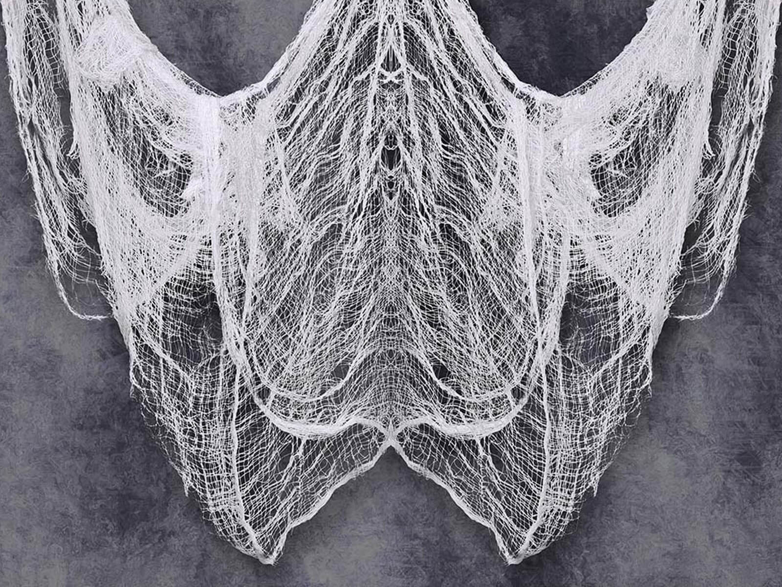 • Fehér hálós szövet, ideális dekoráció Halloweenre.