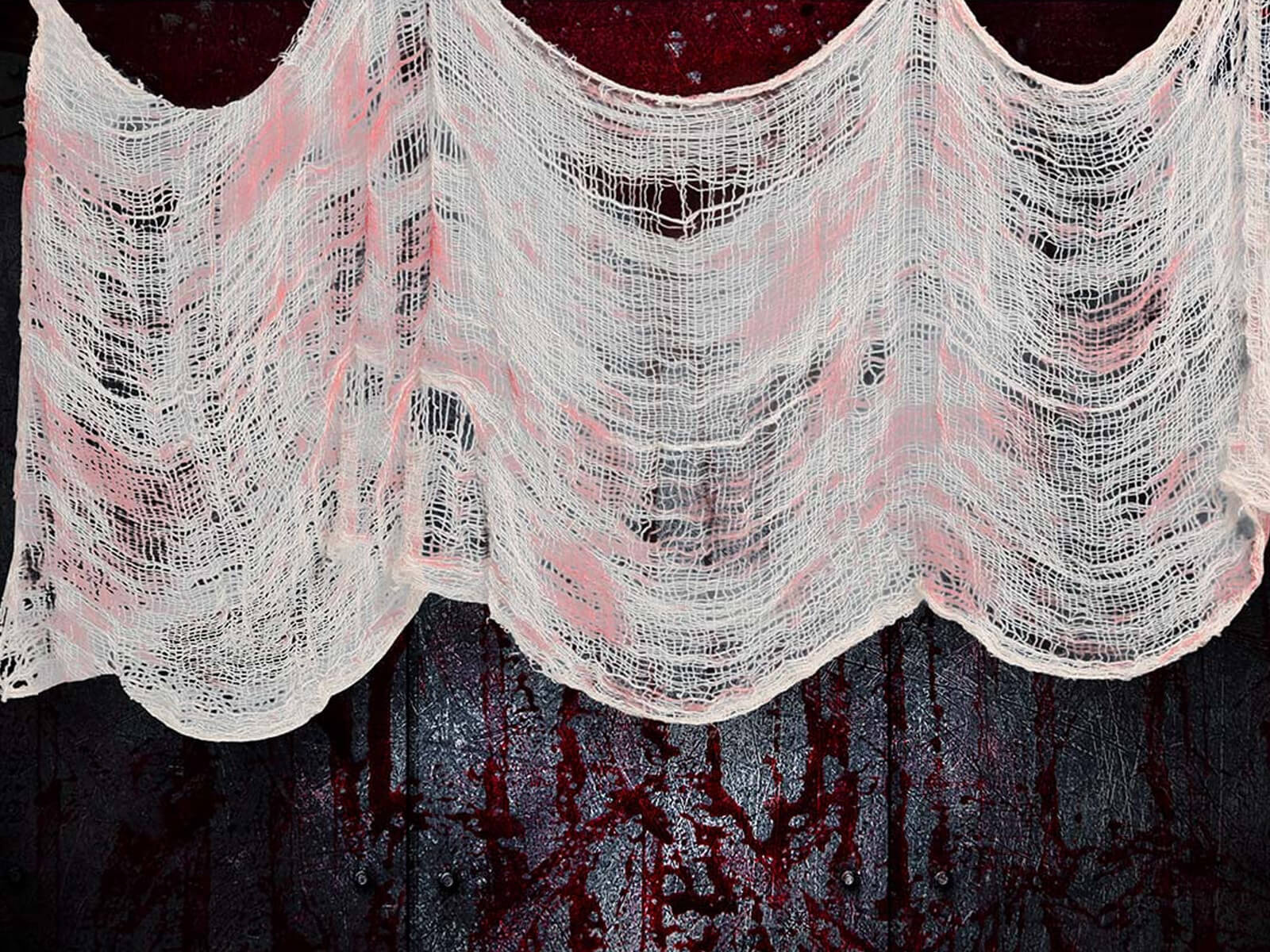 1. Vérfoltos hálós szövet - az ablak vagy ajtó egy horrorfilm jelenetére emlékeztető, nyugtalanító megjelenést kölcsönöz az ablaknak vagy ajtónak. A tökéletes módja a Halloween hangulat fokozásának!