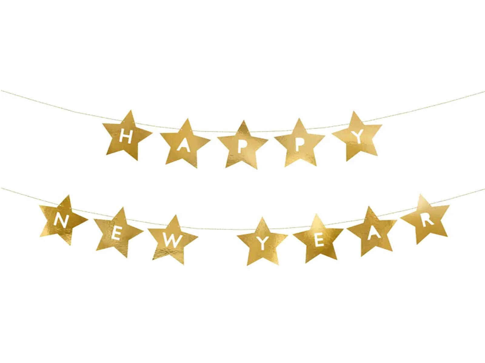 Meghívjuk Önt, hogy ünnepelje az új évet egyedi bannerünkkel "Boldog új évet" arany csillagokkal díszítve. Vonzza a vendégek figyelmét, és adjon csillogást a szilveszteri dekorációnak ezzel az elegáns kiegészítővel. A banner 290 cm és 17 cm magas, így a bejárati ajtótól a nappaliba bárhová felakasztható.