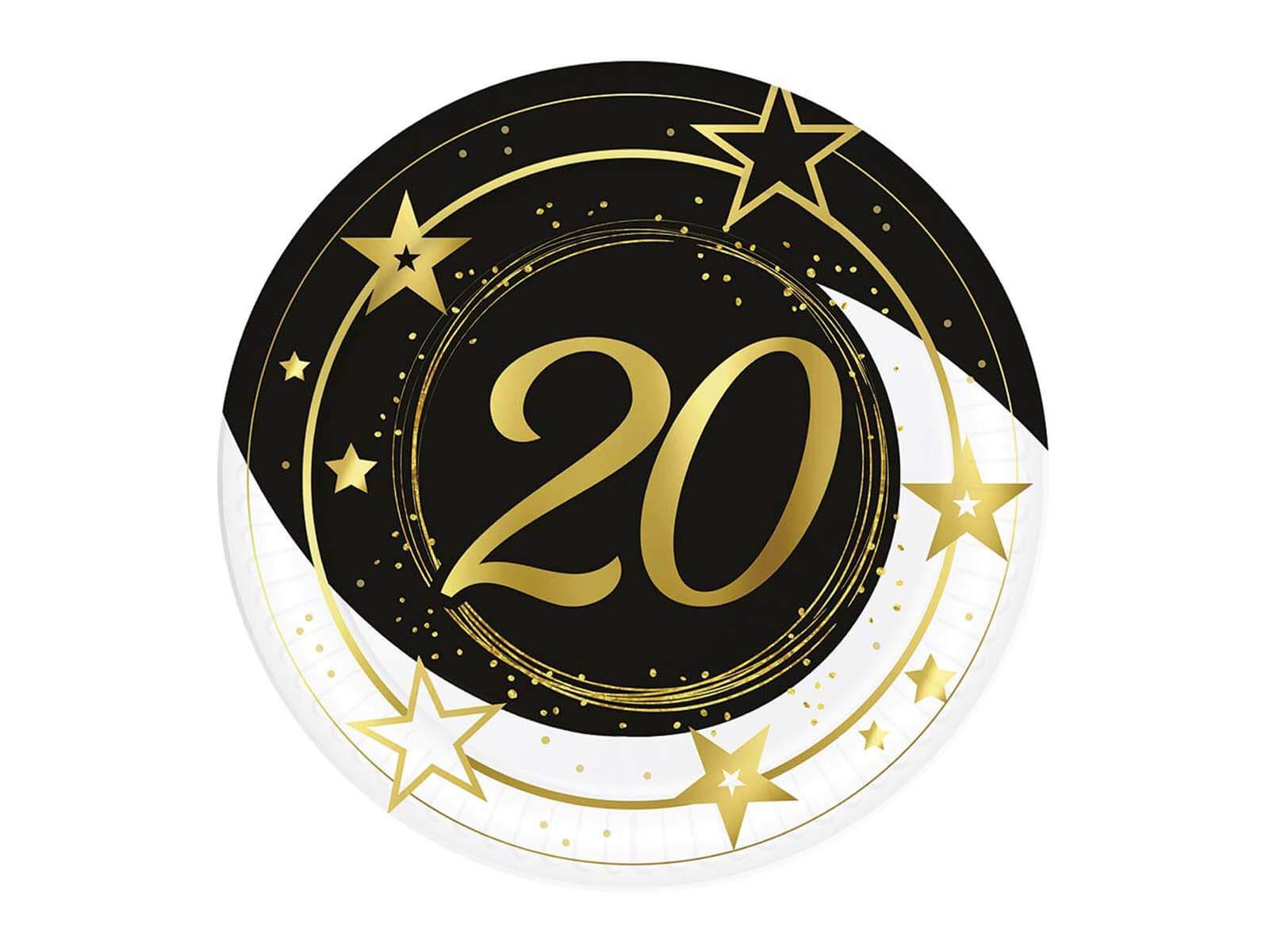 Huszadik születésnapi papírtányér fekete - 23 cm - 6 db.