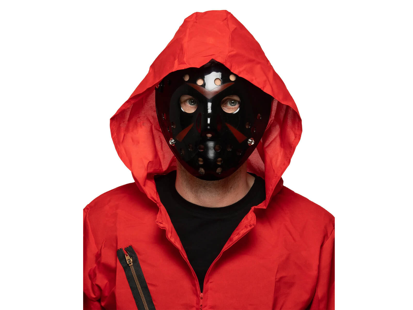 Merüljön el a horrorfilmek sötét világában az exkluzív Péntek 13. maszkkal fekete színben, piros ékezetekkel díszítve. Ez a merész, kultikus filmek által inspirált kiegészítő tökéletes választás Halloweenhez, jelmezes partikhoz vagy más különleges alkalmakhoz.