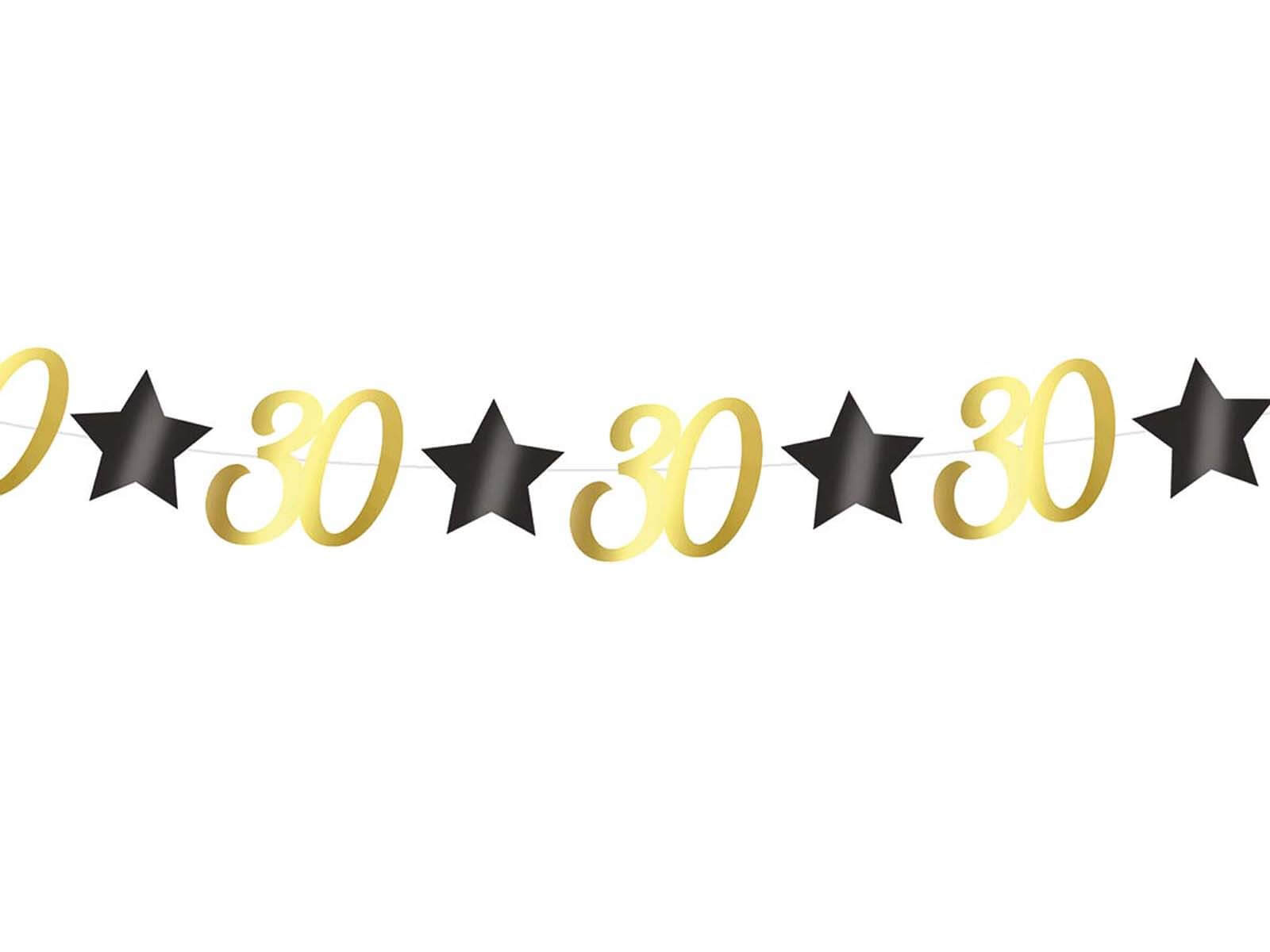• Füzér aranyozott harmincas és fekete csillagokkal, tökéletes egy harmincadik születésnapi partira.